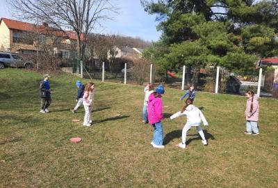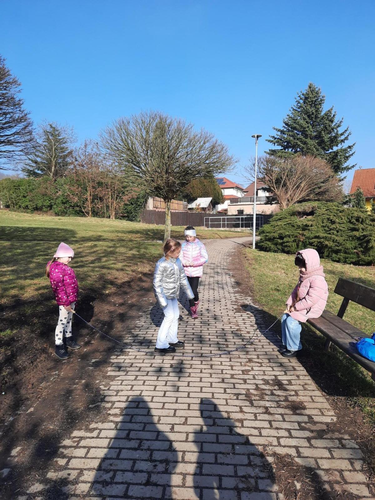 Na vycházkách v lese, u Skalky i v parku jsme pozorovali jarní probouzení přírody a sportovali jsme: