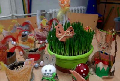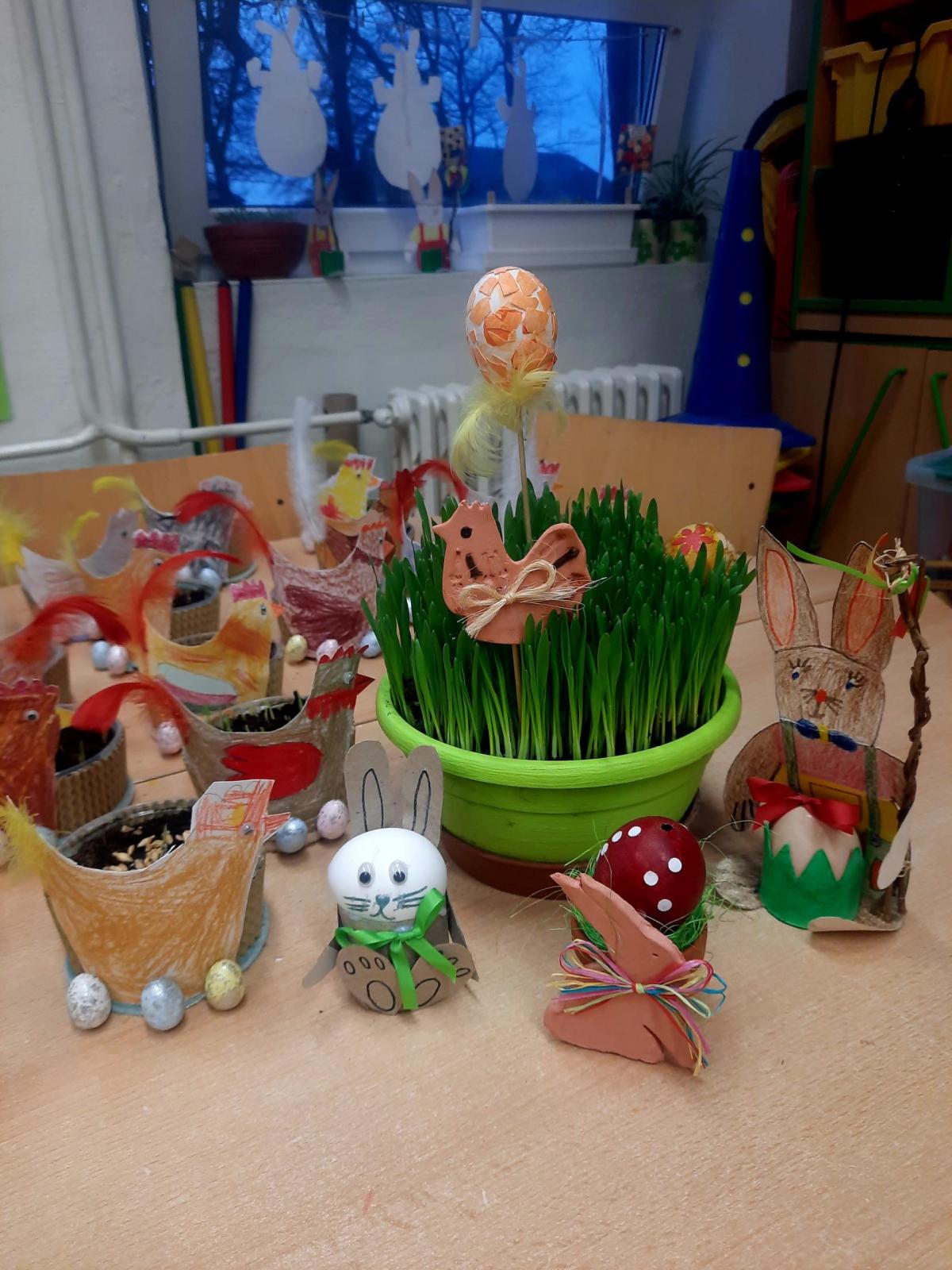 Zajíčci, slepičky, vyšívané přáníčka a další krásné výrobky ozdobily naší družinu a určitě také potěšili i rodiče.