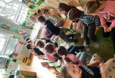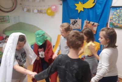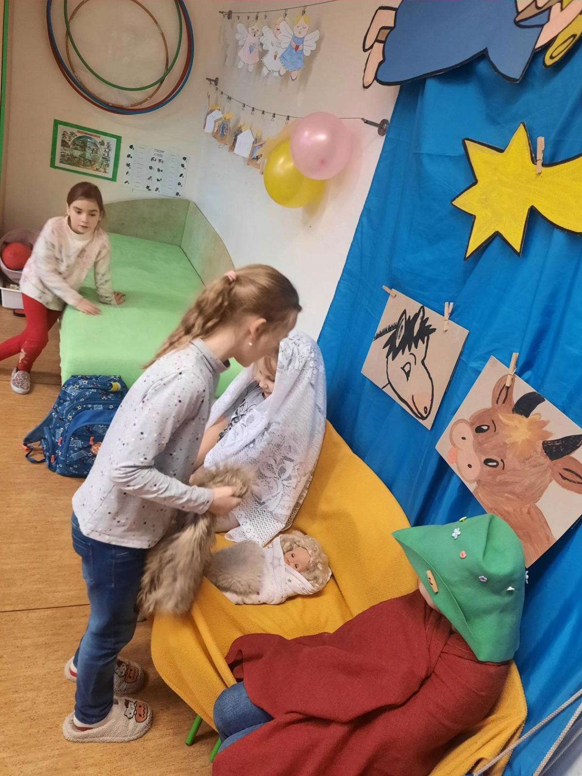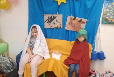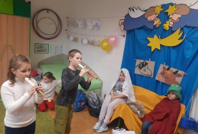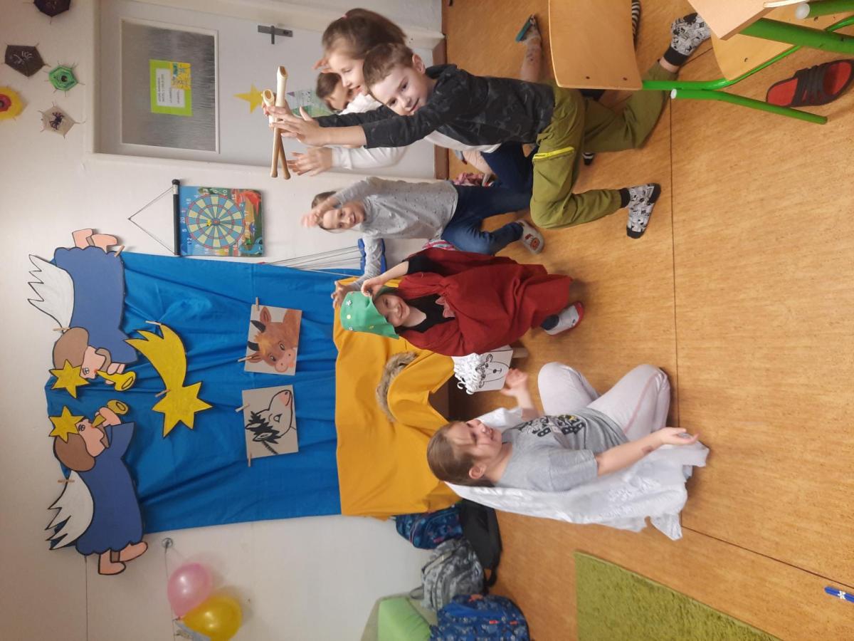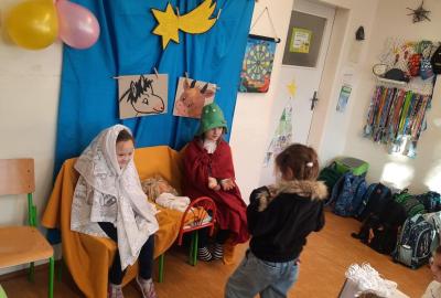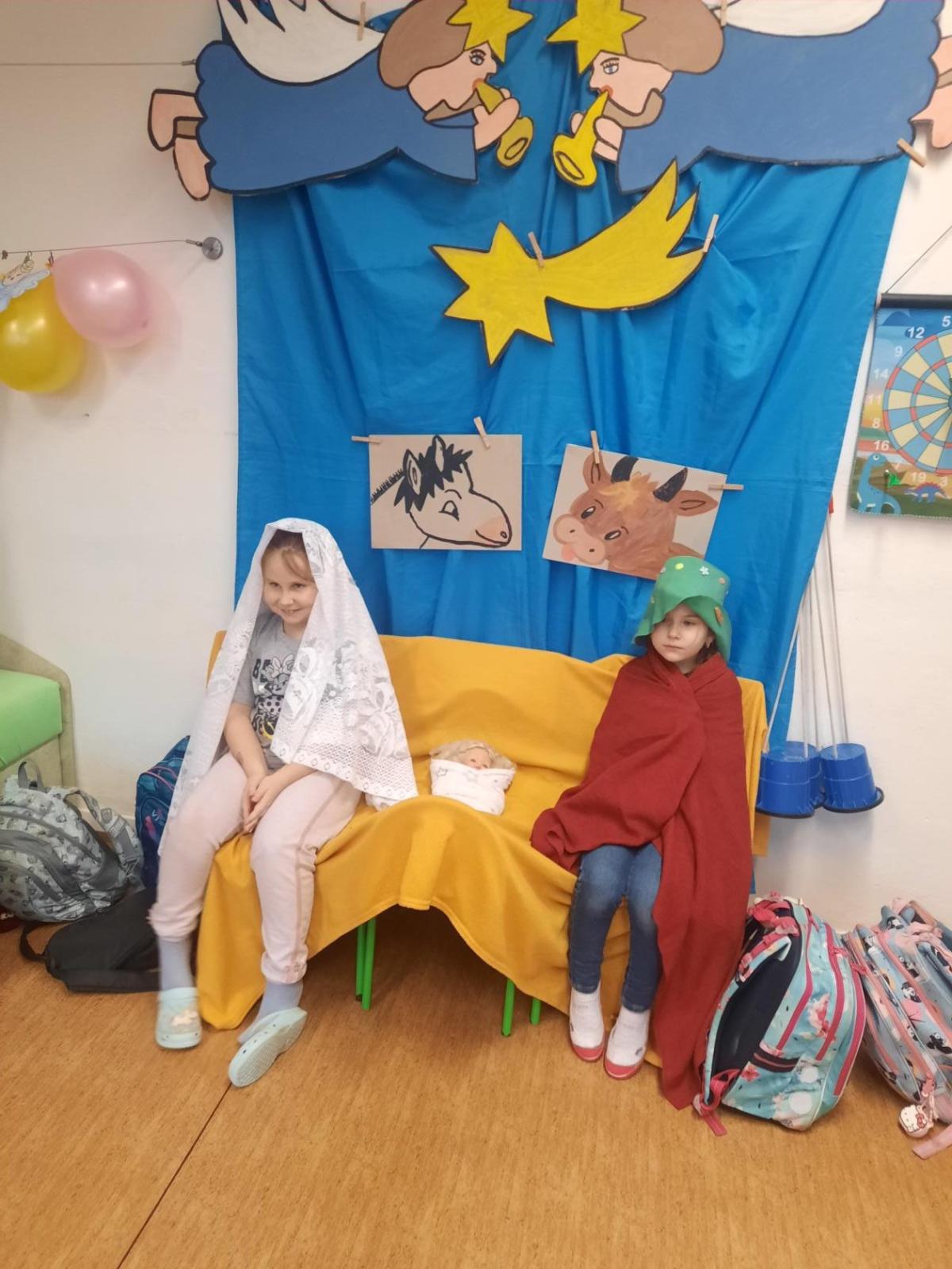 Zpívali jsme koledy a hráli Betlém. Nechyběla ani zábava a společné hry, oblíbené 3opice, kopaná v sedě, židličkovaná a tancování :-)