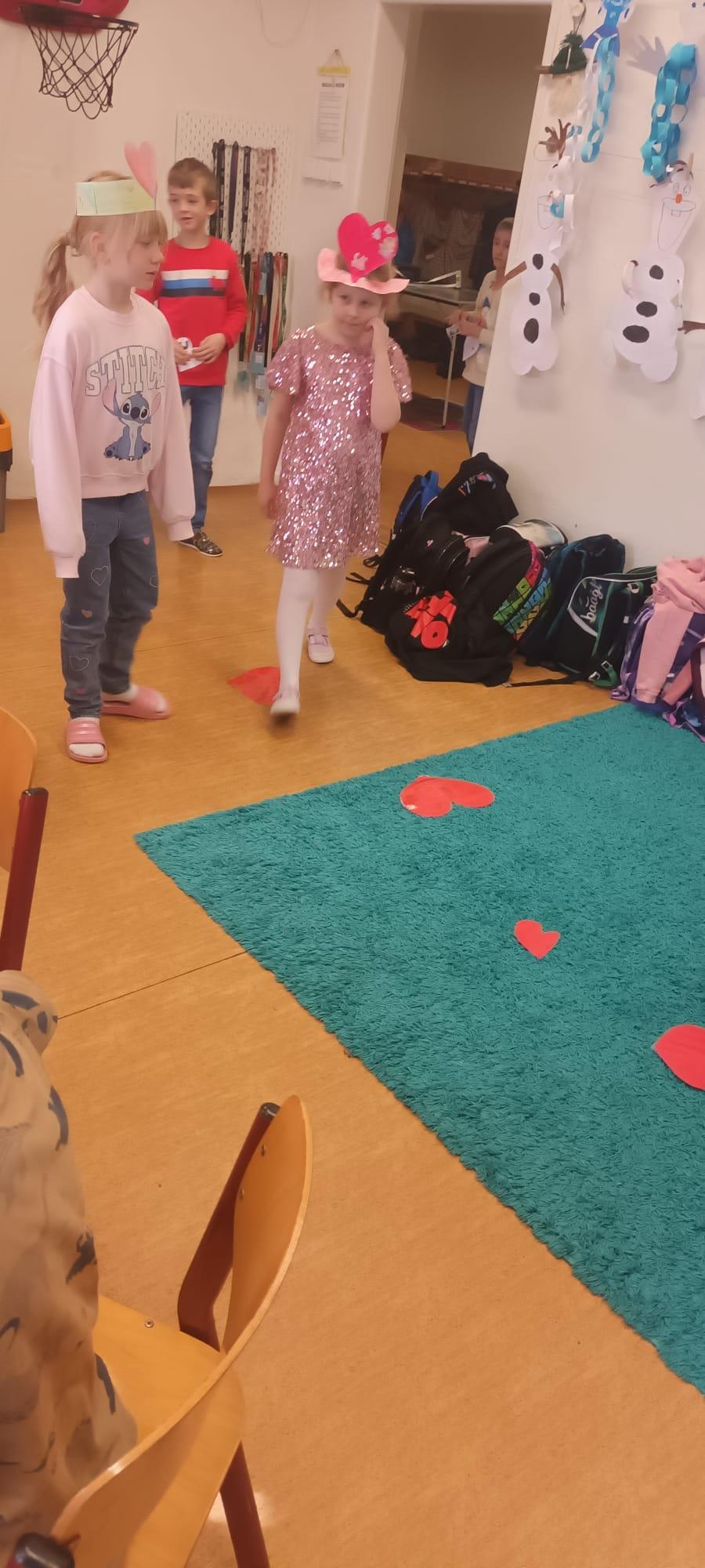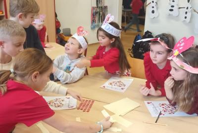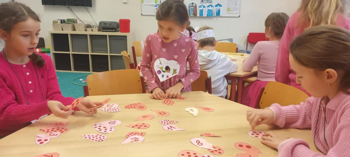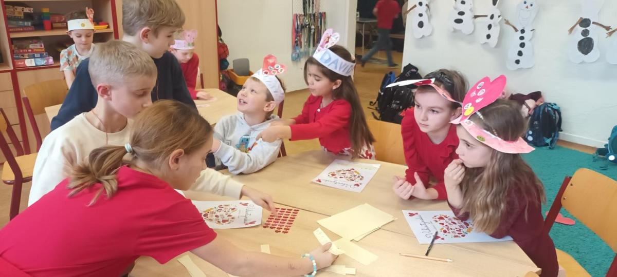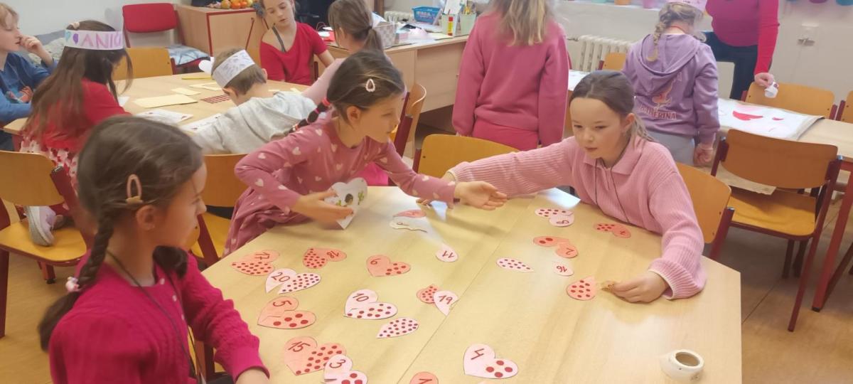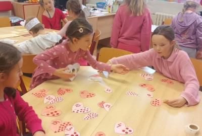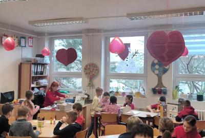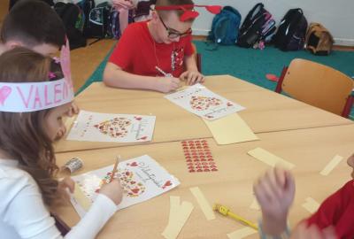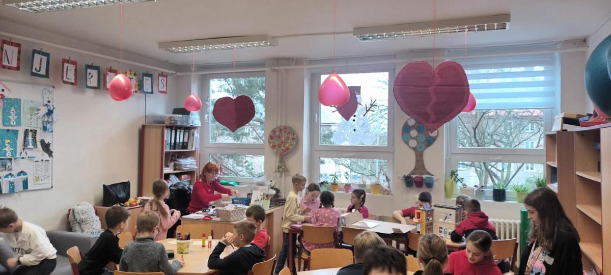 Tento měsíc byl pro nás krátký, díky jarním prázdninám, přesto jsme zvládli připravit se na celodružinovou akci Srdíčkový den. Vyprávěli jsme si nejen o lásce, ale také o charakterových vlastnostech-laskavosti, ohleduplnosti , o zdravém lidském sdrdci a čím jej můžeme podporovat. Vyráběli jsme Valentýnská srdíčka s přáním nejen pro rodiče , ale i kamarády/ky./ Starší spolužáci se podíleli na výzdobě naší družinky, obkreslovali, vyřezávali a barvili srdíčka z kartonu. Valentýnský den , na který se všichni těšili, byl opravdu srdíčkový. Žáci si libovolně procházeli všemi odděleními ŠD a tvořili, hledali slova k Valentýnu, hráli bingo a plnili různé úkoly. Čeká nás ještě akce v tělocvičně k ZOH a odpočinková kulturní akce- návštěva kina Citadela. Naše děti se moc těší.