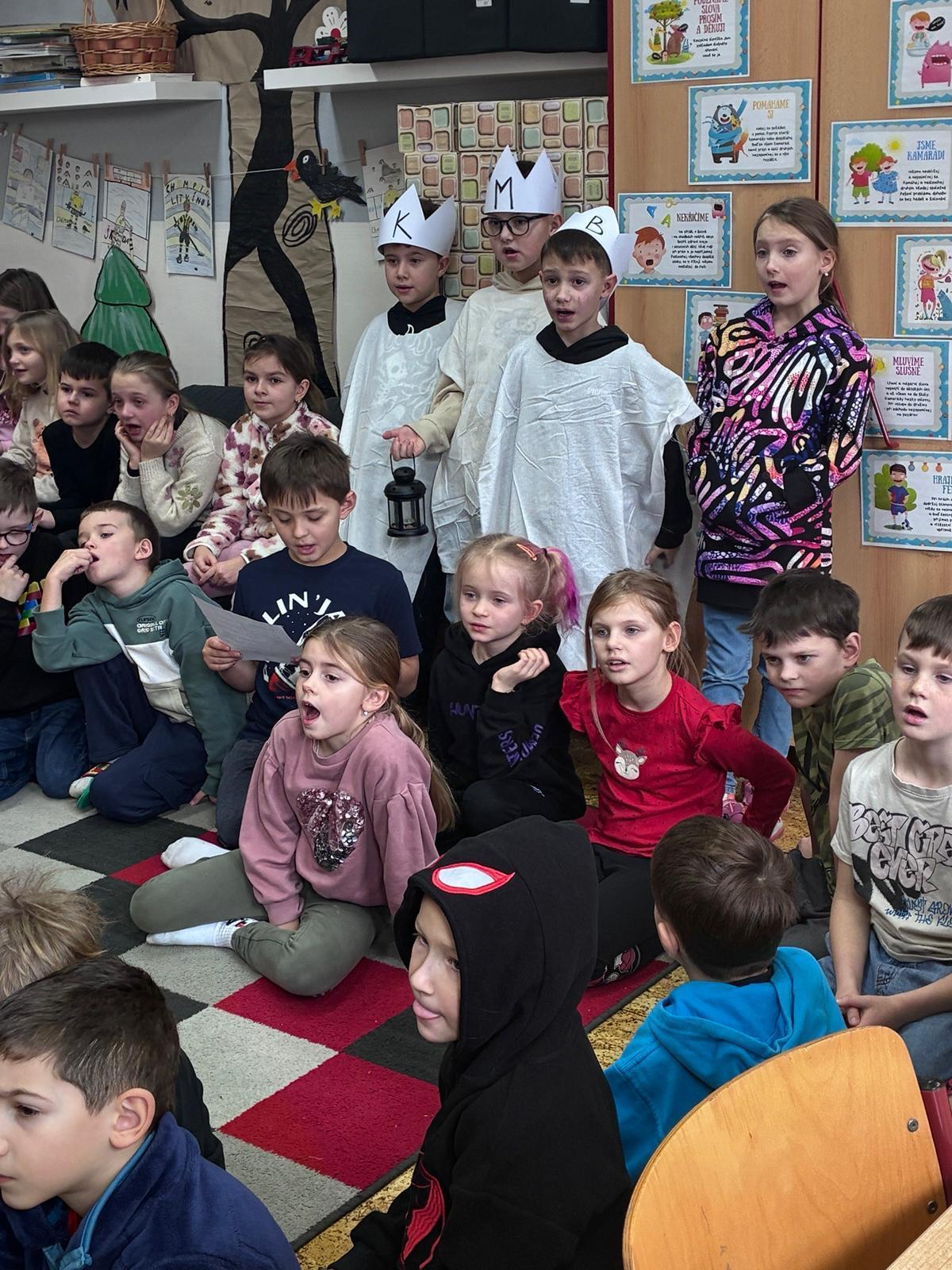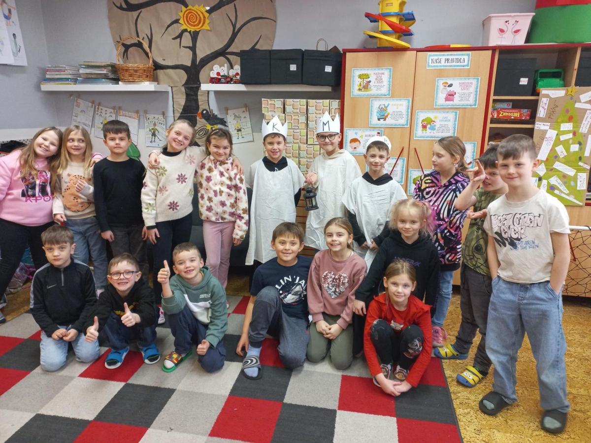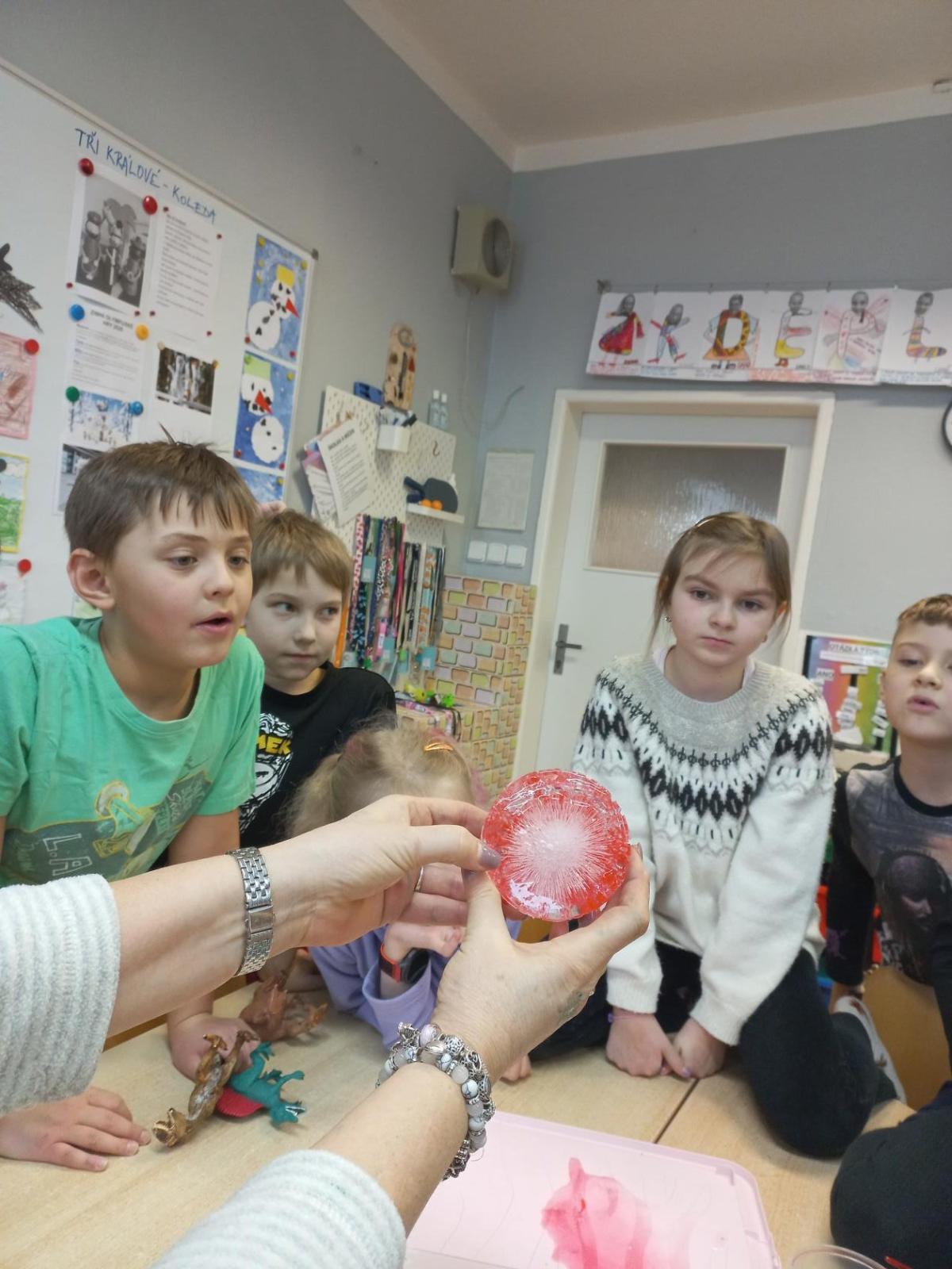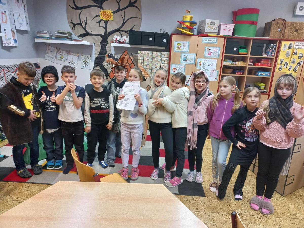 Po prázdninách jsme se sešli, sdíleli své zážitky a hned jsme se pustili do nacvičování koledy: " My tři králové". Vše se vydařilo a našemu zpěvu jsme pozvali i kamarády z vedlejší družiny. Zima začala v plném proudu a užívali jsme si bobování a hrátky na sněhu, se sněhem. Mysleli jsme i na ptáčky a v kuchyňce jsme připravili pochoutky ze semínek a oříšků. Zavěsili jsme si za okno v družině a v lesíku. Zaujali nás pokusy s ledem a pozorování ledu v přírodě. Mráz je malý umělec! Vyzkoušeli jsme si malování do sněhu. Dokončujeme nacvičování divadla pro kamarády, pohádku" O Smolíčkovi". Vyrobili jsme a namalovali chaloupku, dobroty pro Smolíčka. O role v pohádce je velký zájem a tak se střídáme. Naučili jsme se nové hry: Bum - color, Ubongo. Hrajeme zimní a polární bingo. Děti moc chválím a všem přeji krásné prázdniny! Těším se na vyprávění!