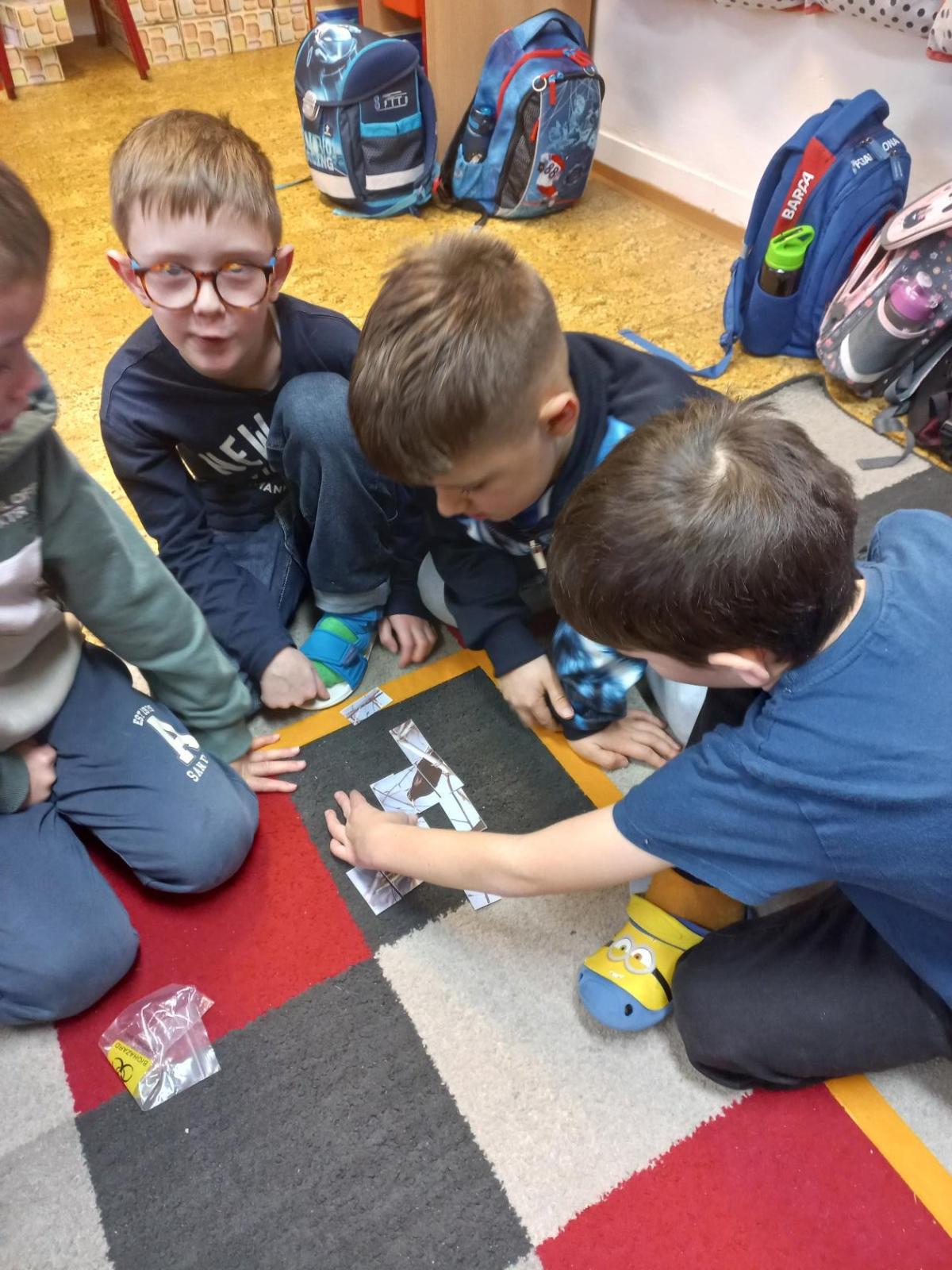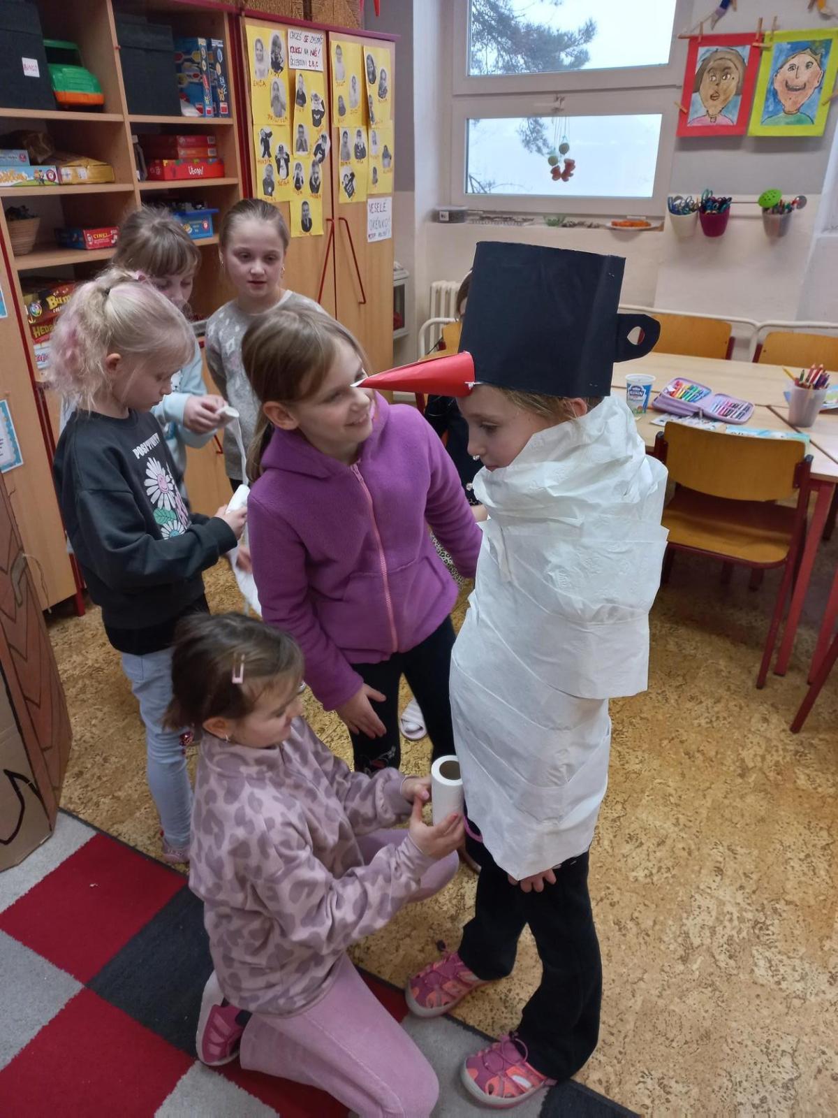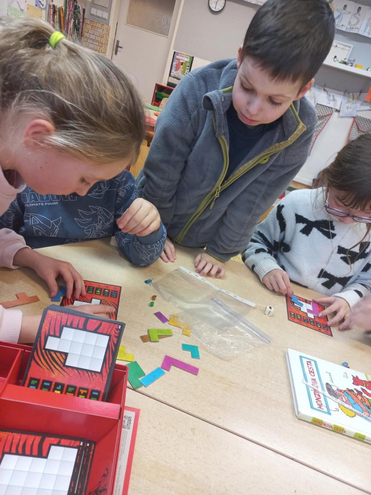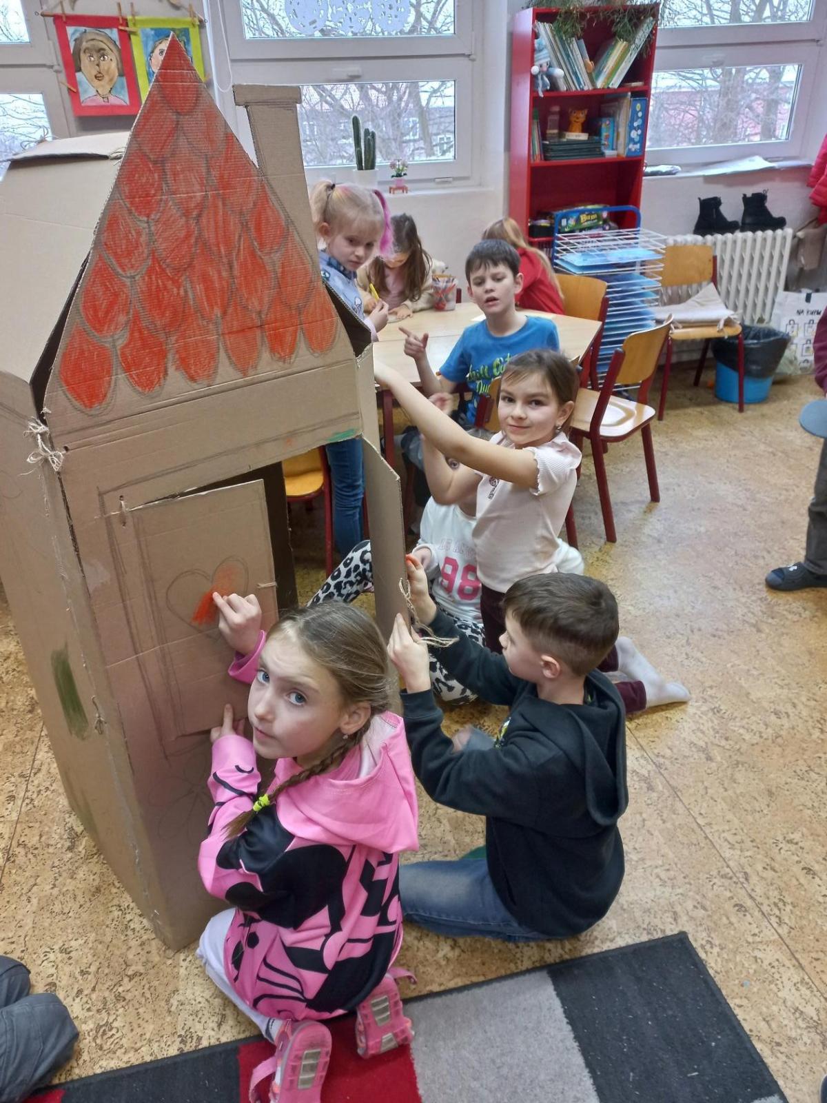 Po prázdninách jsme se sešli, sdíleli své zážitky a hned jsme se pustili do nacvičování koledy: " My tři králové". Vše se vydařilo a našemu zpěvu jsme pozvali i kamarády z vedlejší družiny. Zima začala v plném proudu a užívali jsme si bobování a hrátky na sněhu, se sněhem. Mysleli jsme i na ptáčky a v kuchyňce jsme připravili pochoutky ze semínek a oříšků. Zavěsili jsme si za okno v družině a v lesíku. Zaujali nás pokusy s ledem a pozorování ledu v přírodě. Mráz je malý umělec! Vyzkoušeli jsme si malování do sněhu. Dokončujeme nacvičování divadla pro kamarády, pohádku" O Smolíčkovi". Vyrobili jsme a namalovali chaloupku, dobroty pro Smolíčka. O role v pohádce je velký zájem a tak se střídáme. Naučili jsme se nové hry: Bum - color, Ubongo. Hrajeme zimní a polární bingo. Děti moc chválím a všem přeji krásné prázdniny! Těším se na vyprávění!