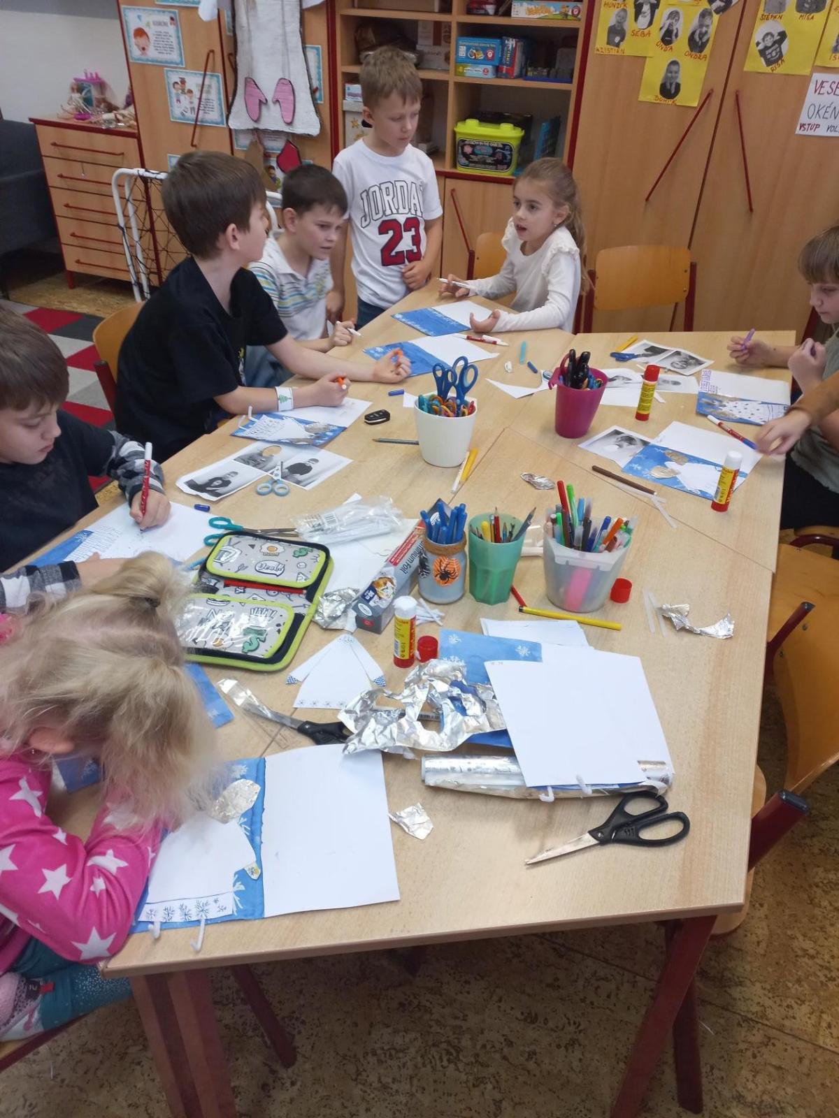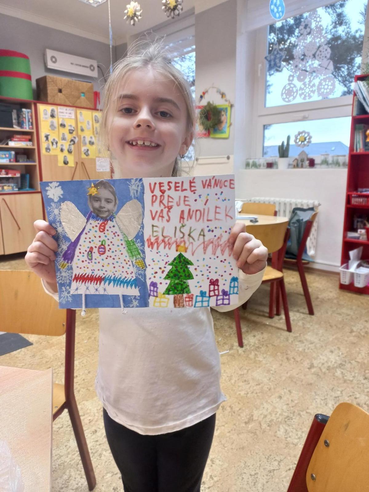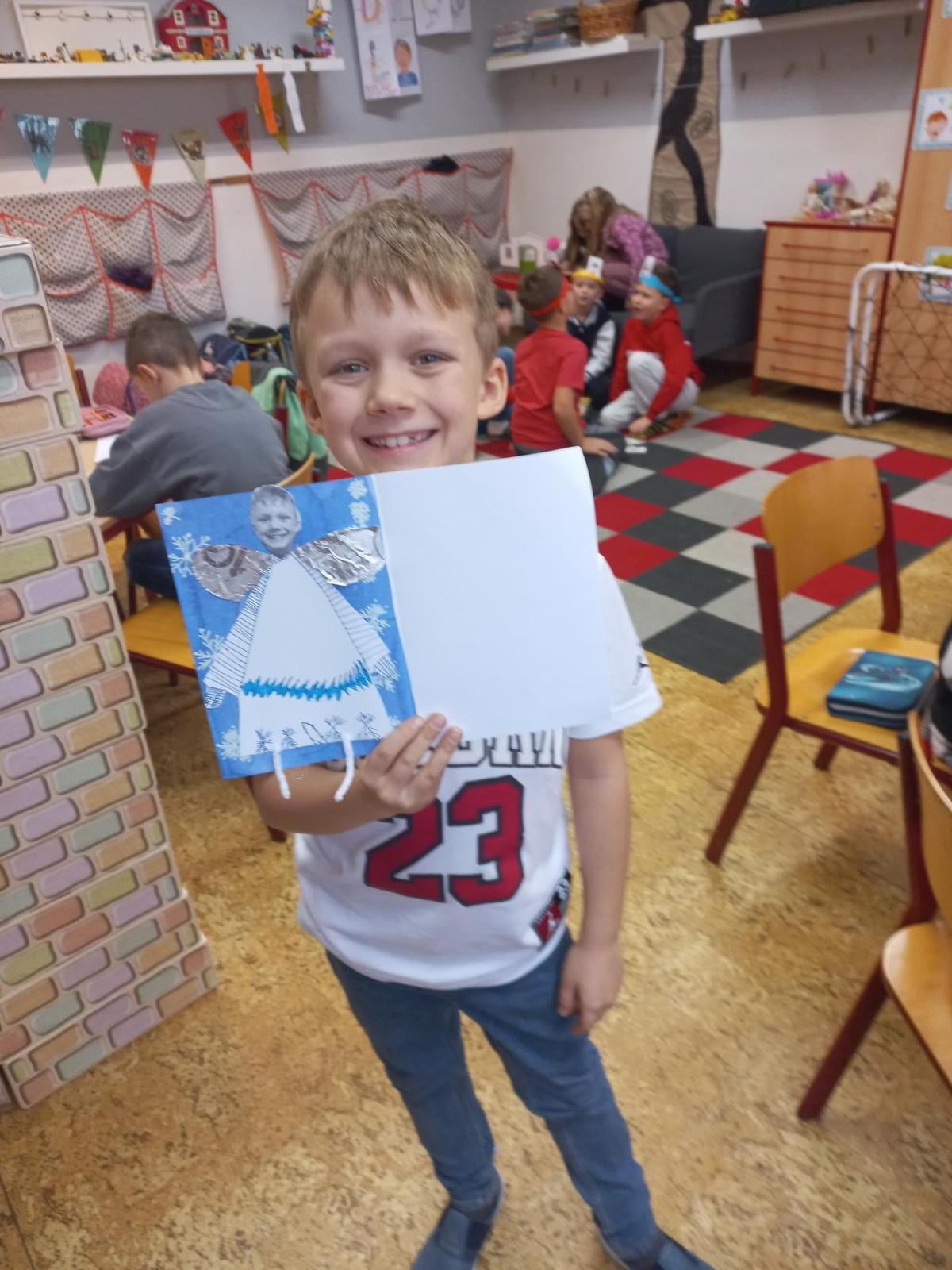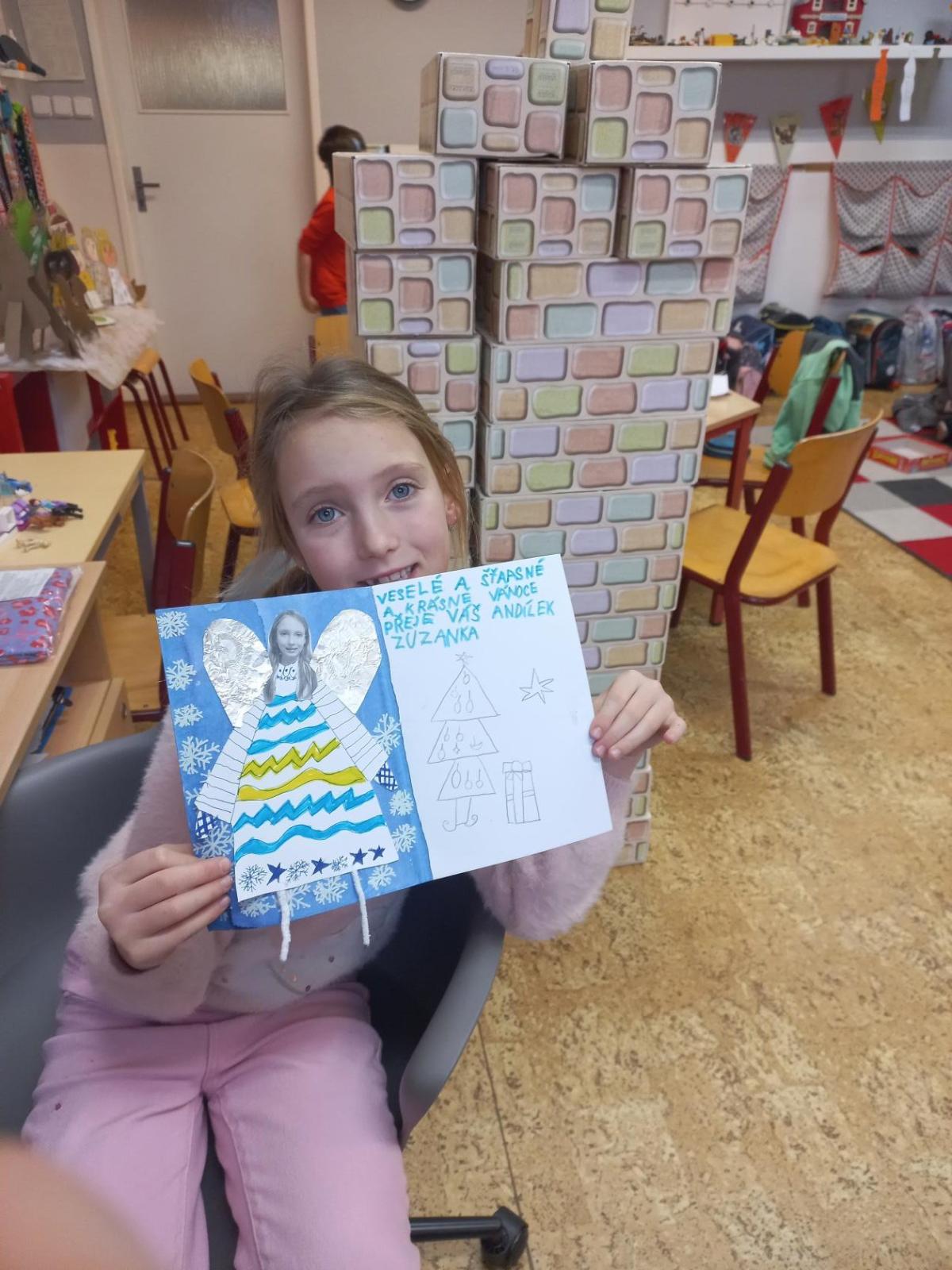 V prosinci jsme si užili krásný čas před nejhezčími svátky v roce - VÁNOCEMI! Po nadílce jsme se pustili do fotografování a výrobě přáníčka pod stromeček. Odvezli jsme 6 krabic od bot na charitativní akci a moc děkujeme za podporu těm, kteří přispěli dárečkem. Děti s napětím sledovaly, jak nám dárky přibývají a s chutí nazdobily krabice svými kresbami. Naše dvě skupiny perfektně spolupracovaly při nácviku dramatizace koledy: " Jak jsi krásné neviňátko". Představení jsme zahráli našim spolužákům a kamarádům ze IV.oddělení a společně jsme si zazpívali vánoční písně. Největší úspěch měla píseň Vánoční od Pokáče! Na jarmark jsme i s dětmi z výtvarného kroužku vyrobili lampičky a ozdoby. Prodejem jsme přispěli na další charitativní akci. Družina přispěla částkou 3000,- Kč. Moc děkujeme za podporu! Venku vládlo nevlídné počasí, na vycházky jsme vyrazili jen občas. Věřím, že o prázdninách si všichni užijeme sváteční radovánky a i sluníčko! Mějte se fajn a budu se těšit v novém roce 2026 - Dana