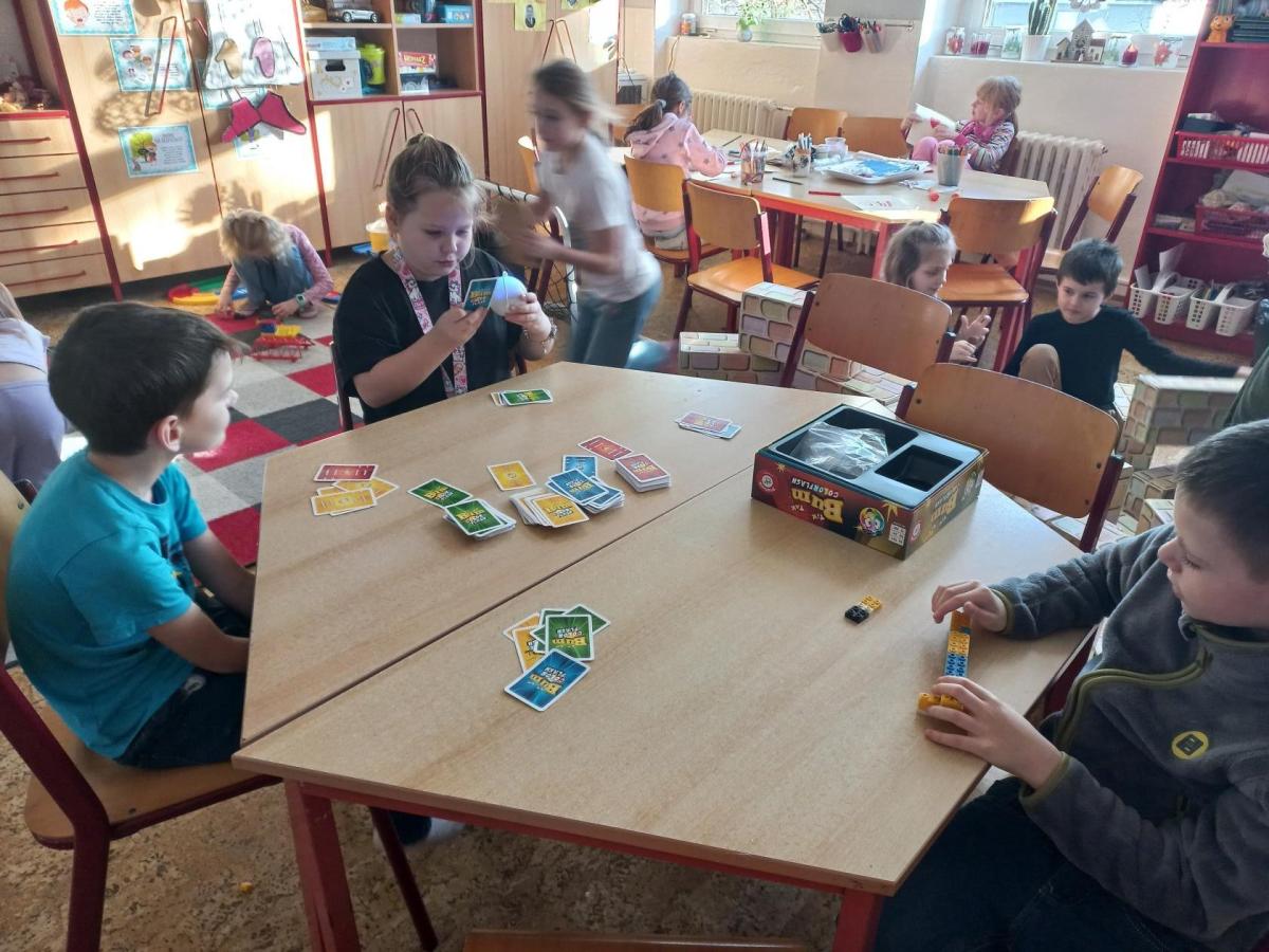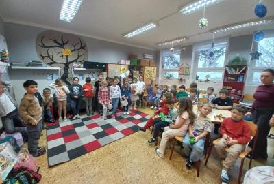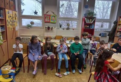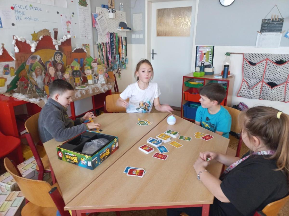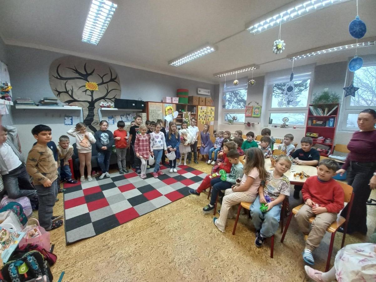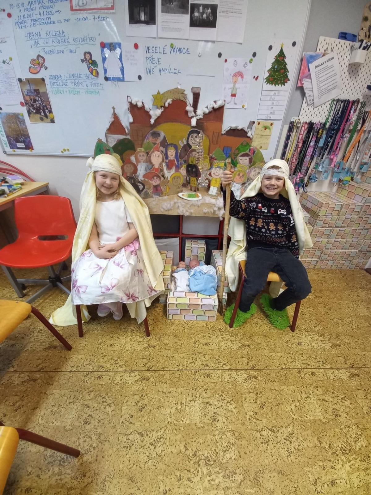 V prosinci jsme si užili krásný čas před nejhezčími svátky v roce - VÁNOCEMI! Po nadílce jsme se pustili do fotografování a výrobě přáníčka pod stromeček. Odvezli jsme 6 krabic od bot na charitativní akci a moc děkujeme za podporu těm, kteří přispěli dárečkem. Děti s napětím sledovaly, jak nám dárky přibývají a s chutí nazdobily krabice svými kresbami. Naše dvě skupiny perfektně spolupracovaly při nácviku dramatizace koledy: " Jak jsi krásné neviňátko". Představení jsme zahráli našim spolužákům a kamarádům ze IV.oddělení a společně jsme si zazpívali vánoční písně. Největší úspěch měla píseň Vánoční od Pokáče! Na jarmark jsme i s dětmi z výtvarného kroužku vyrobili lampičky a ozdoby. Prodejem jsme přispěli na další charitativní akci. Družina přispěla částkou 3000,- Kč. Moc děkujeme za podporu! Venku vládlo nevlídné počasí, na vycházky jsme vyrazili jen občas. Věřím, že o prázdninách si všichni užijeme sváteční radovánky a i sluníčko! Mějte se fajn a budu se těšit v novém roce 2026 - Dana