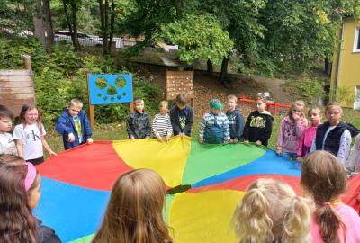 Podnikli jsme podzimní ,,Stromovou štafetu", kterou nám připravili starší žáci.
