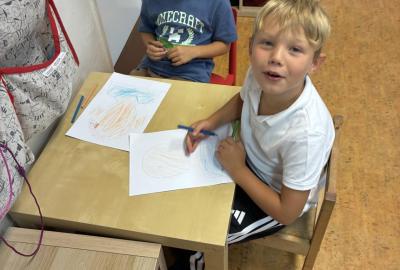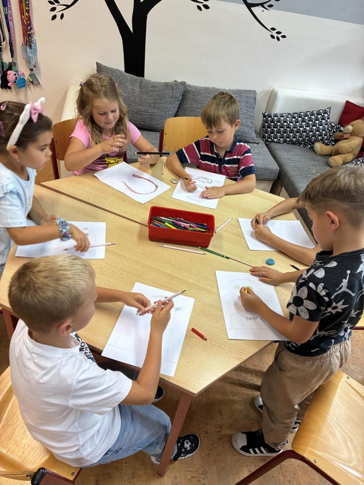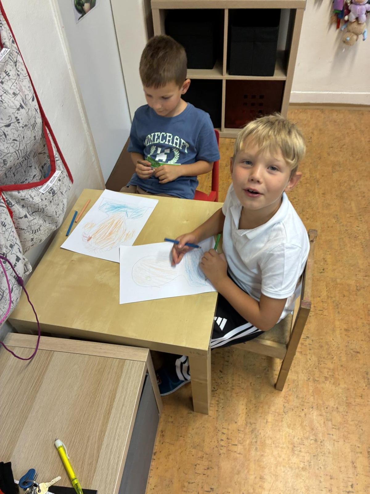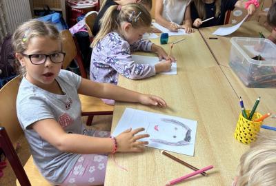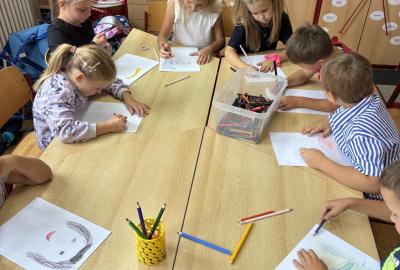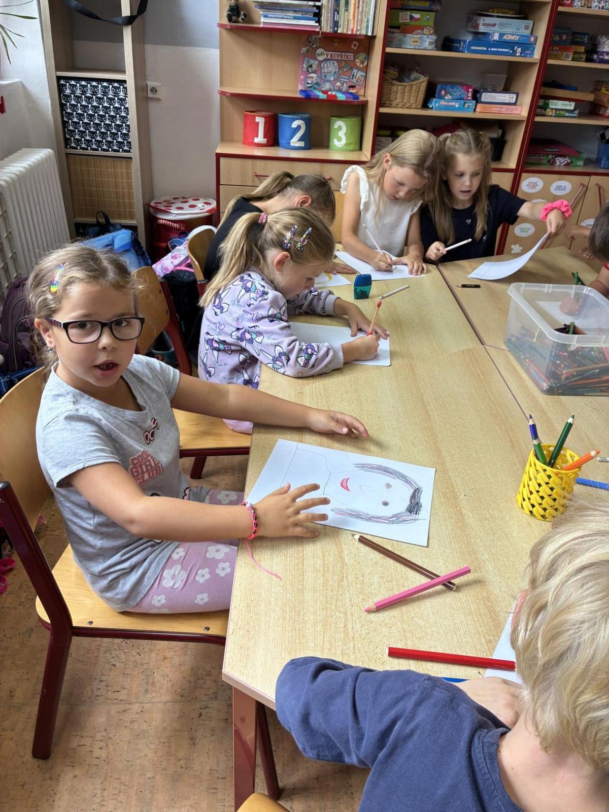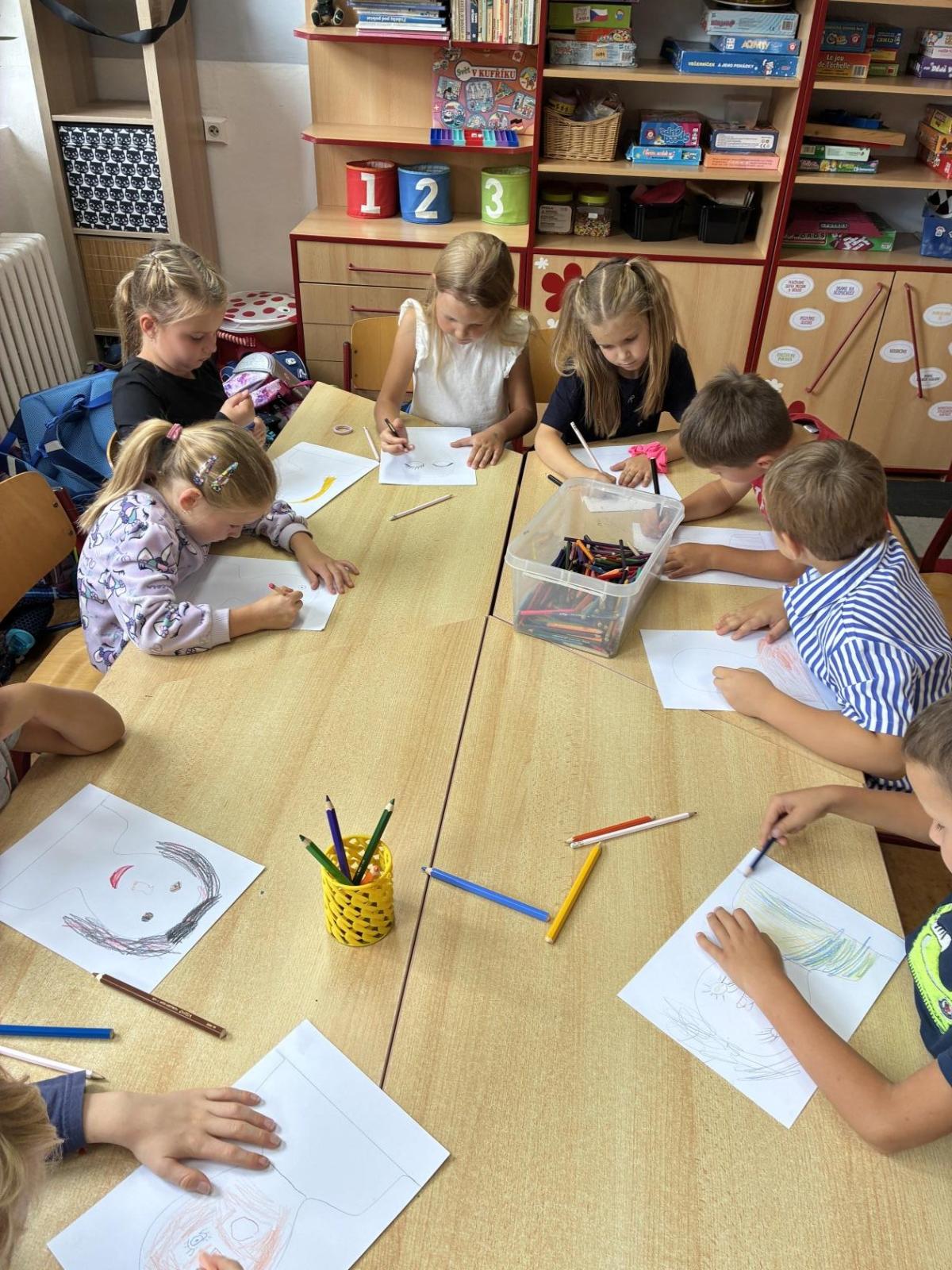 Pokusili jsme se namalovat naše portréty, které jsme si vystavili v družince.