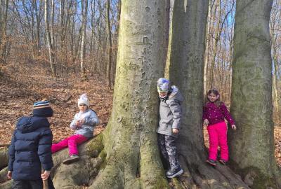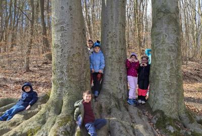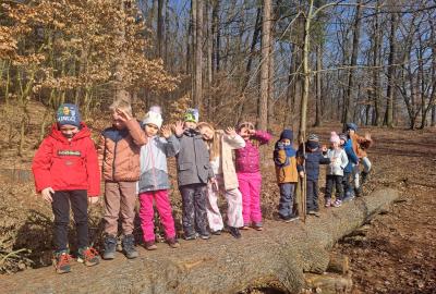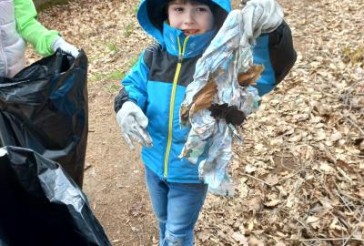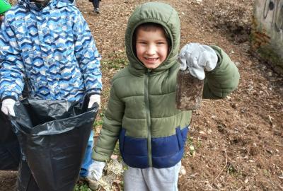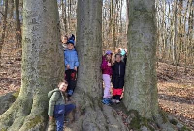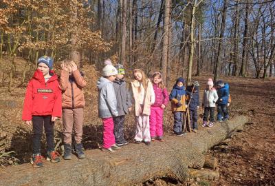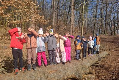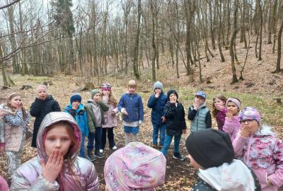 V lese čistíme potok a pozorujeme první jarní rostliny.