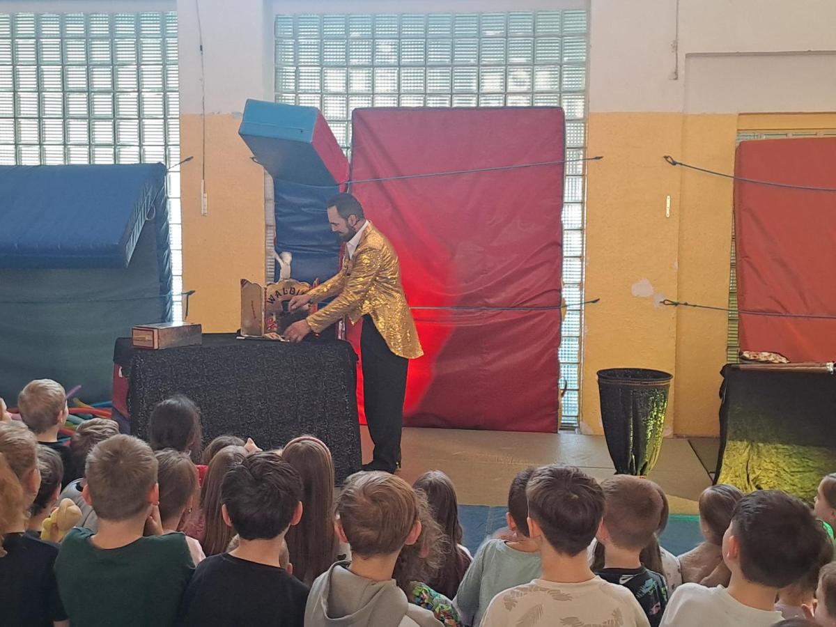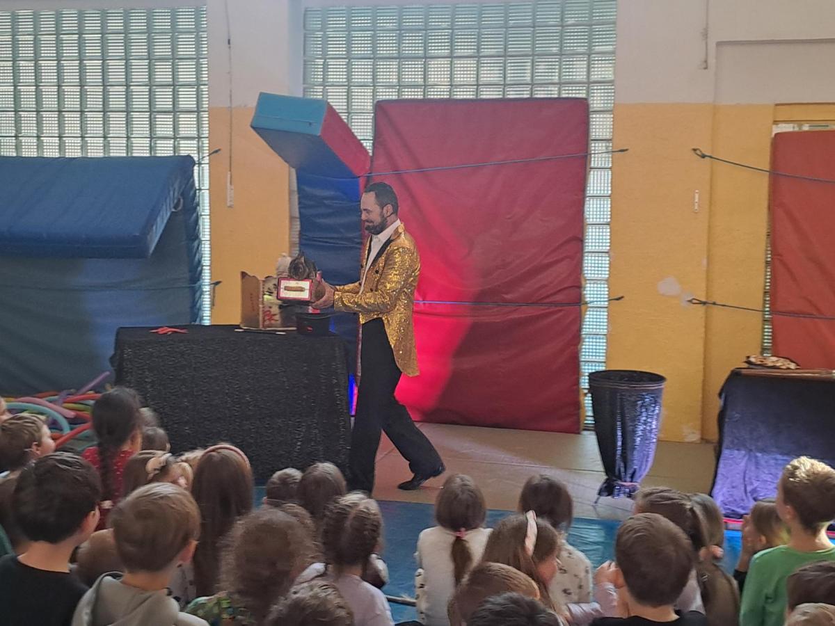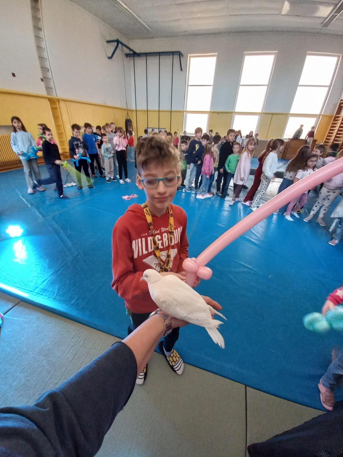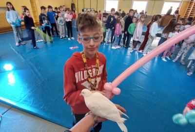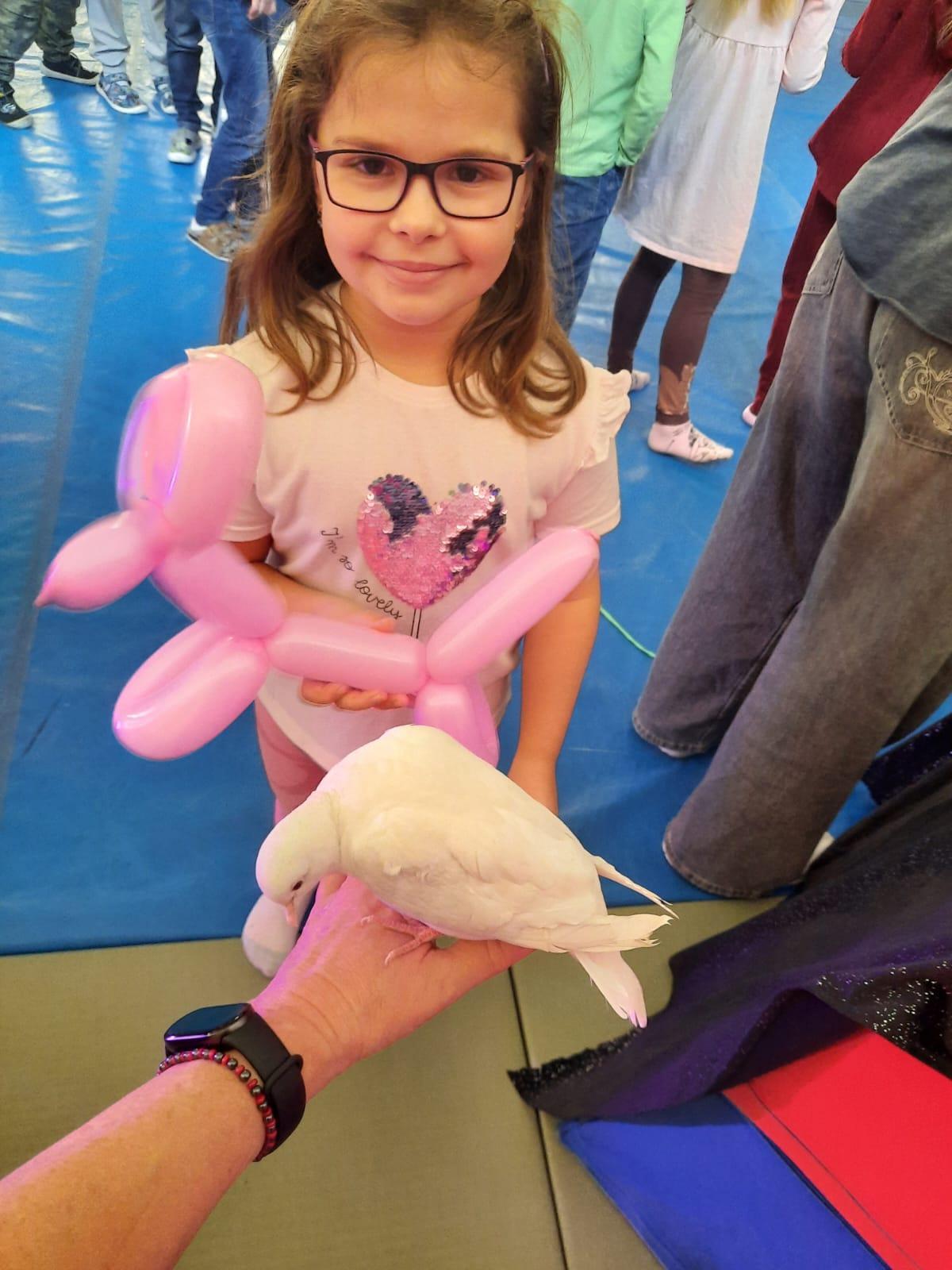 Navštívil nás ve škole kouzelník, který vyčaroval třeba i holubičku nebo králíčka, kterého jsme si mohli pohladit. Na konci představení jsme dostali všichni pejska nebo šavli z balónku.