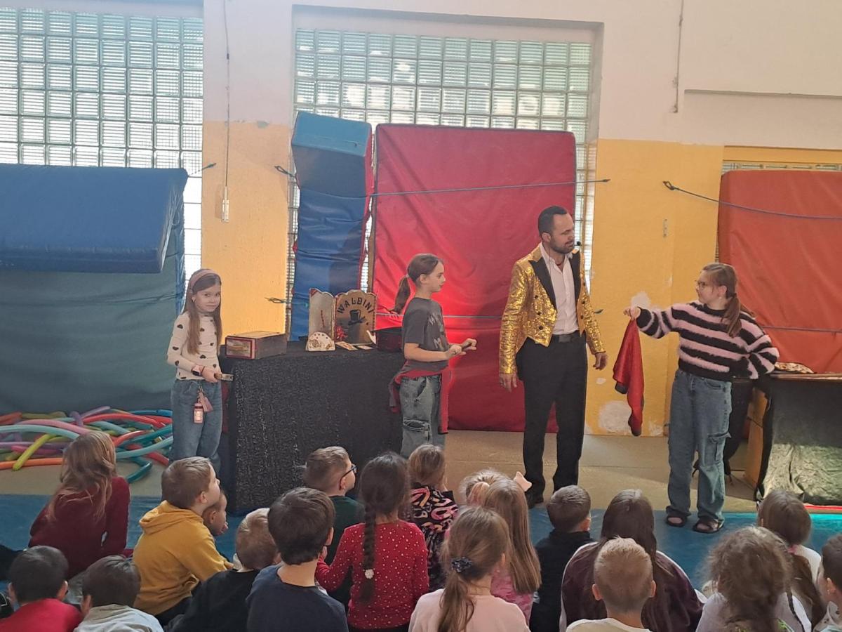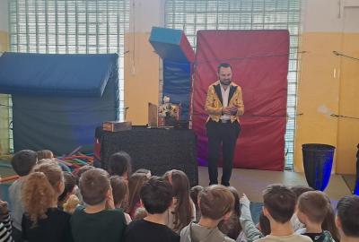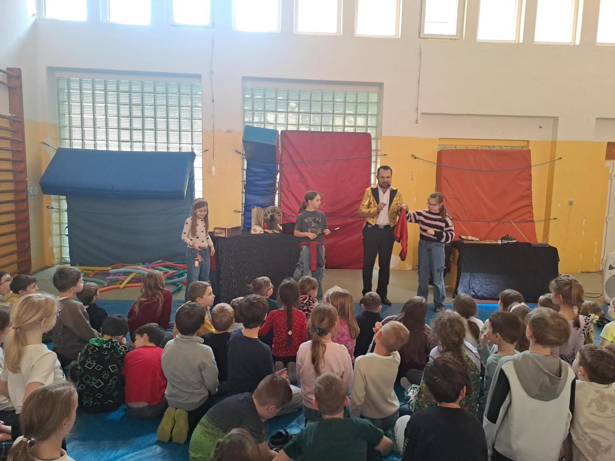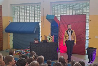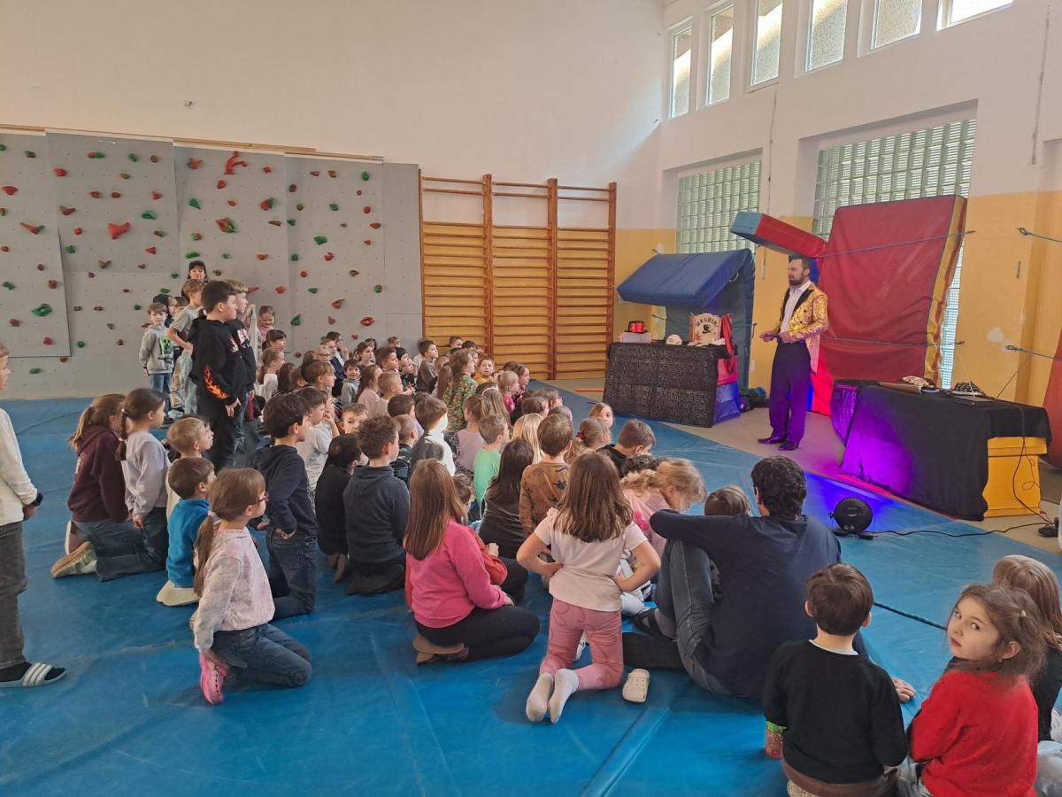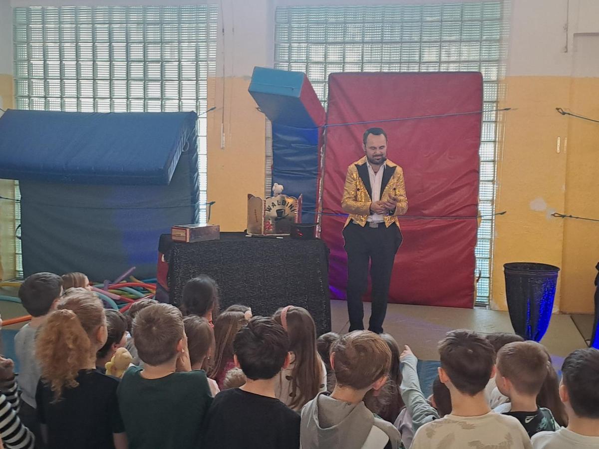 Navštívil nás ve škole kouzelník, který vyčaroval třeba i holubičku nebo králíčka, kterého jsme si mohli pohladit. Na konci představení jsme dostali všichni pejska nebo šavli z balónku.