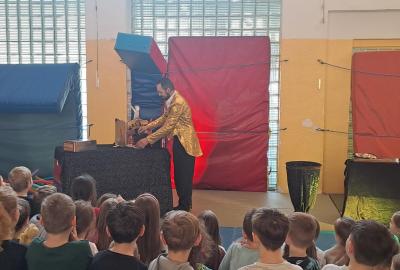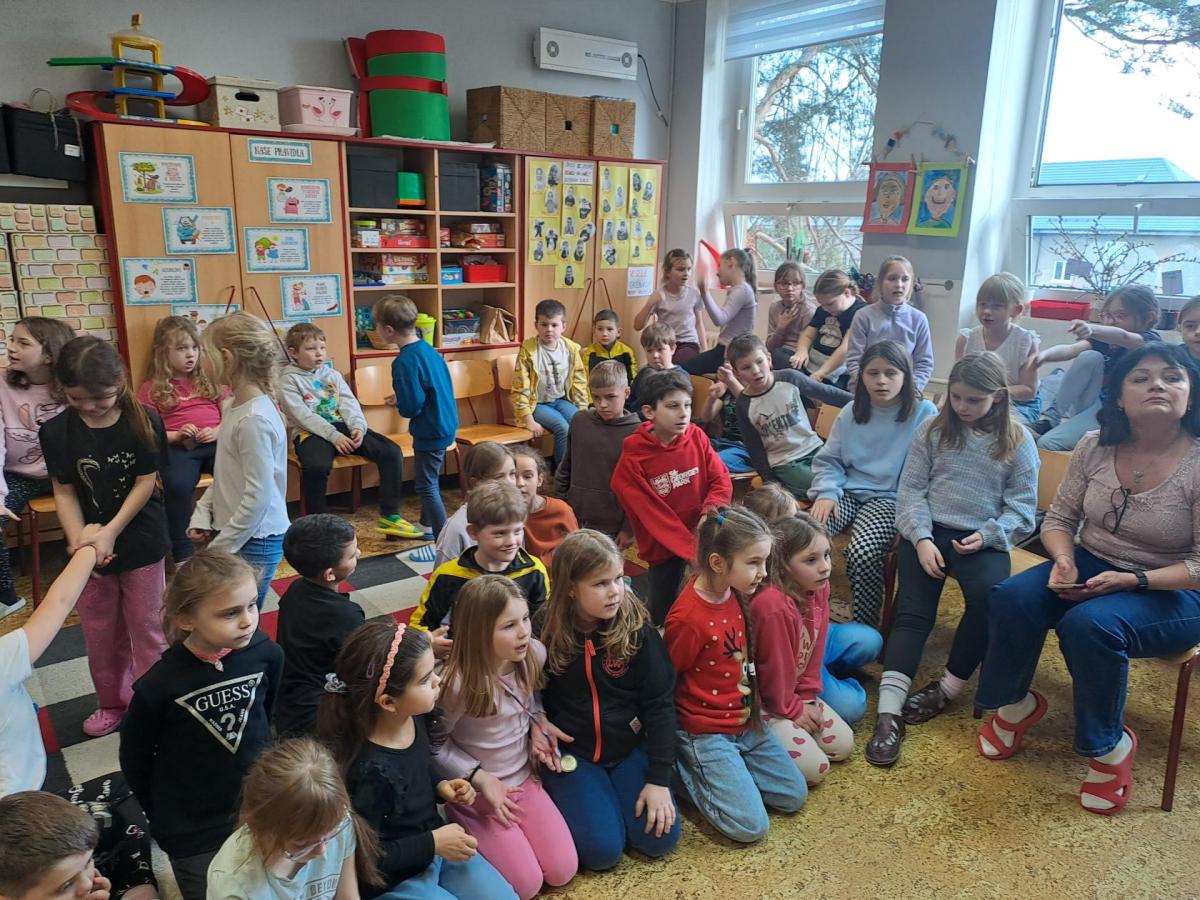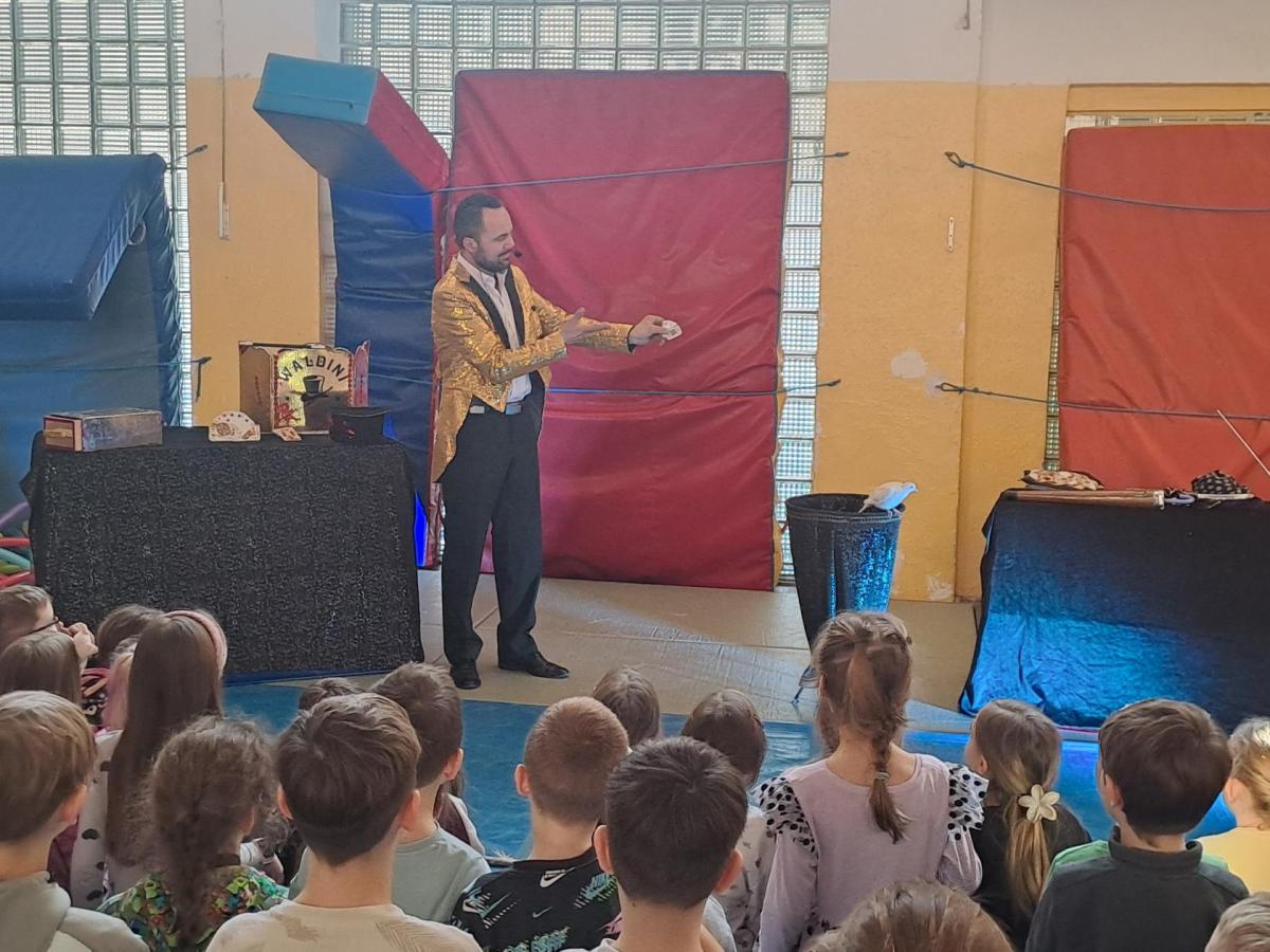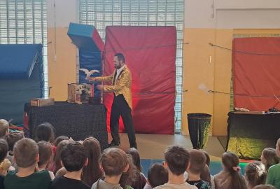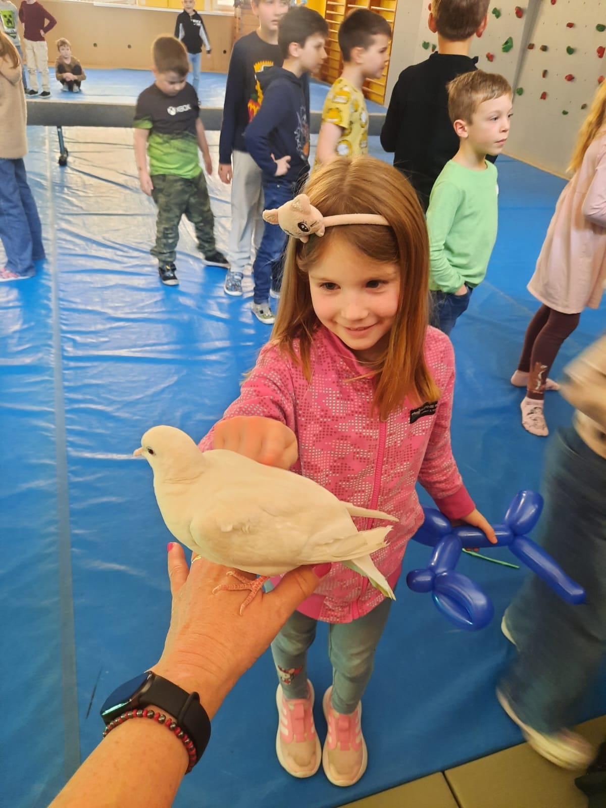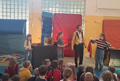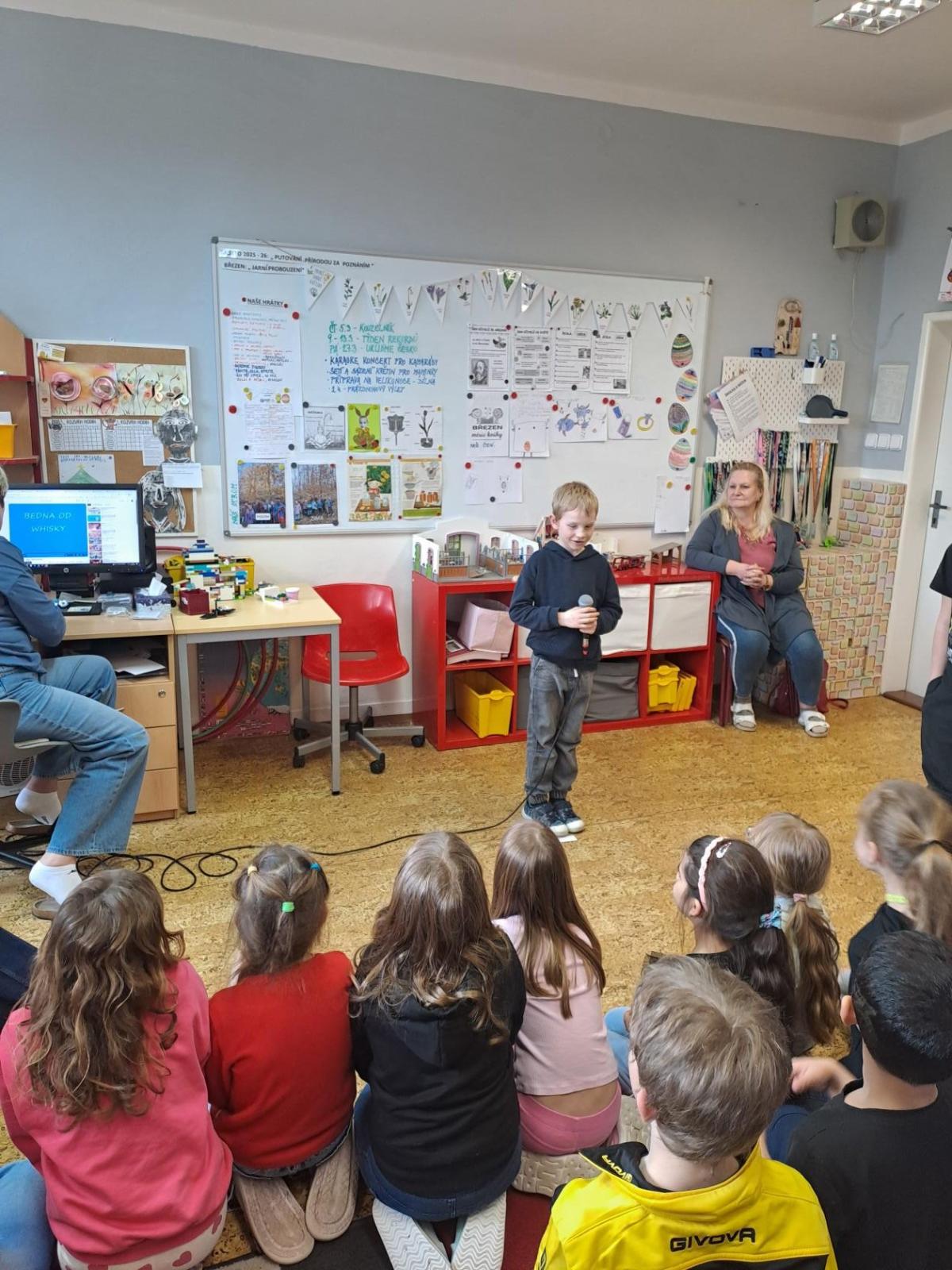 Navštívil nás ve škole kouzelník, který vyčaroval třeba i holubičku nebo králíčka, kterého jsme si mohli pohladit. Na konci představení jsme dostali všichni pejska nebo šavli z balónku.