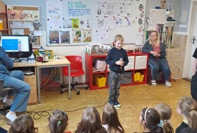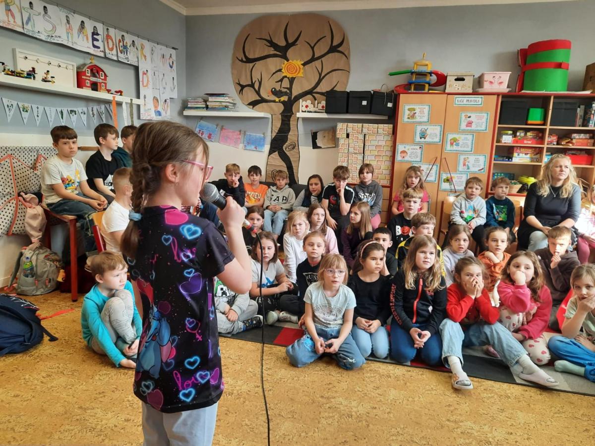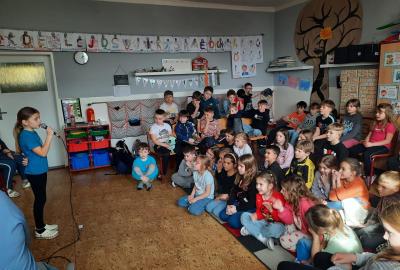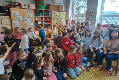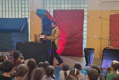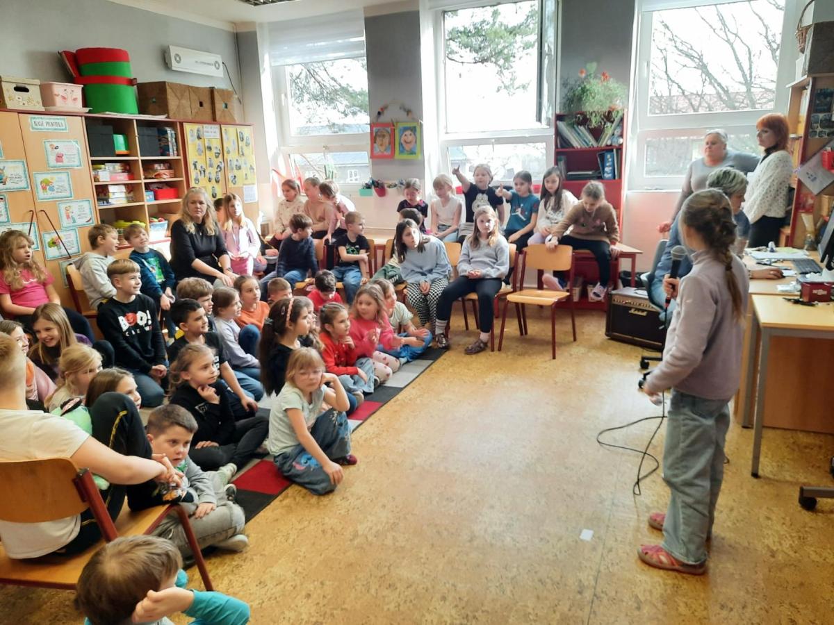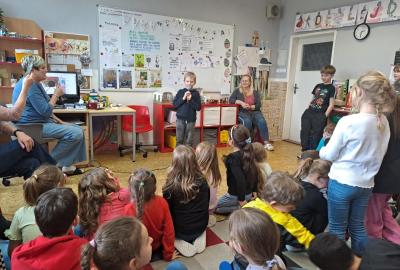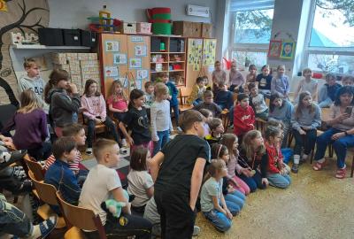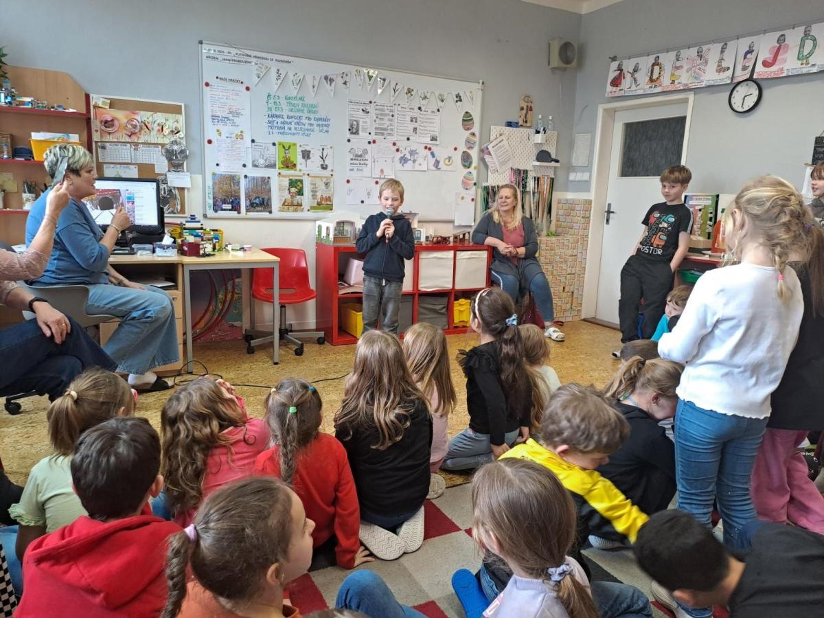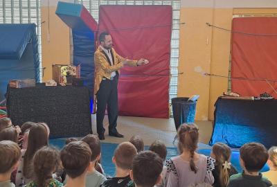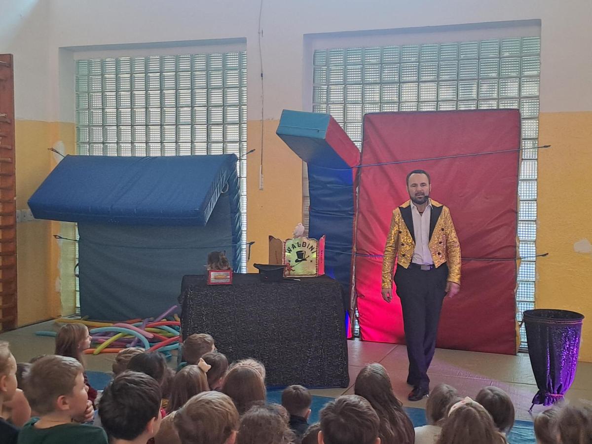 Navštívil nás ve škole kouzelník, který vyčaroval třeba i holubičku nebo králíčka, kterého jsme si mohli pohladit. Na konci představení jsme dostali všichni pejska nebo šavli z balónku.