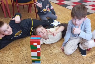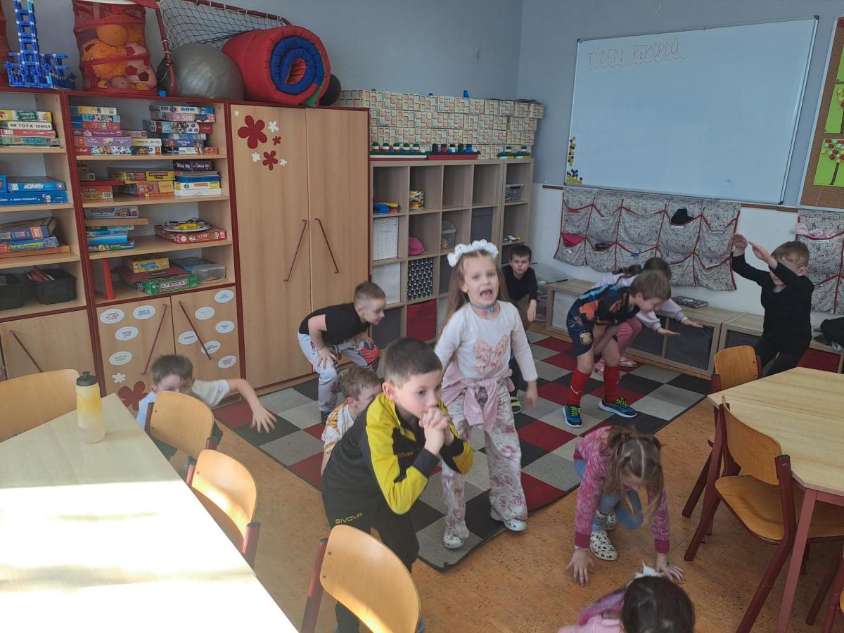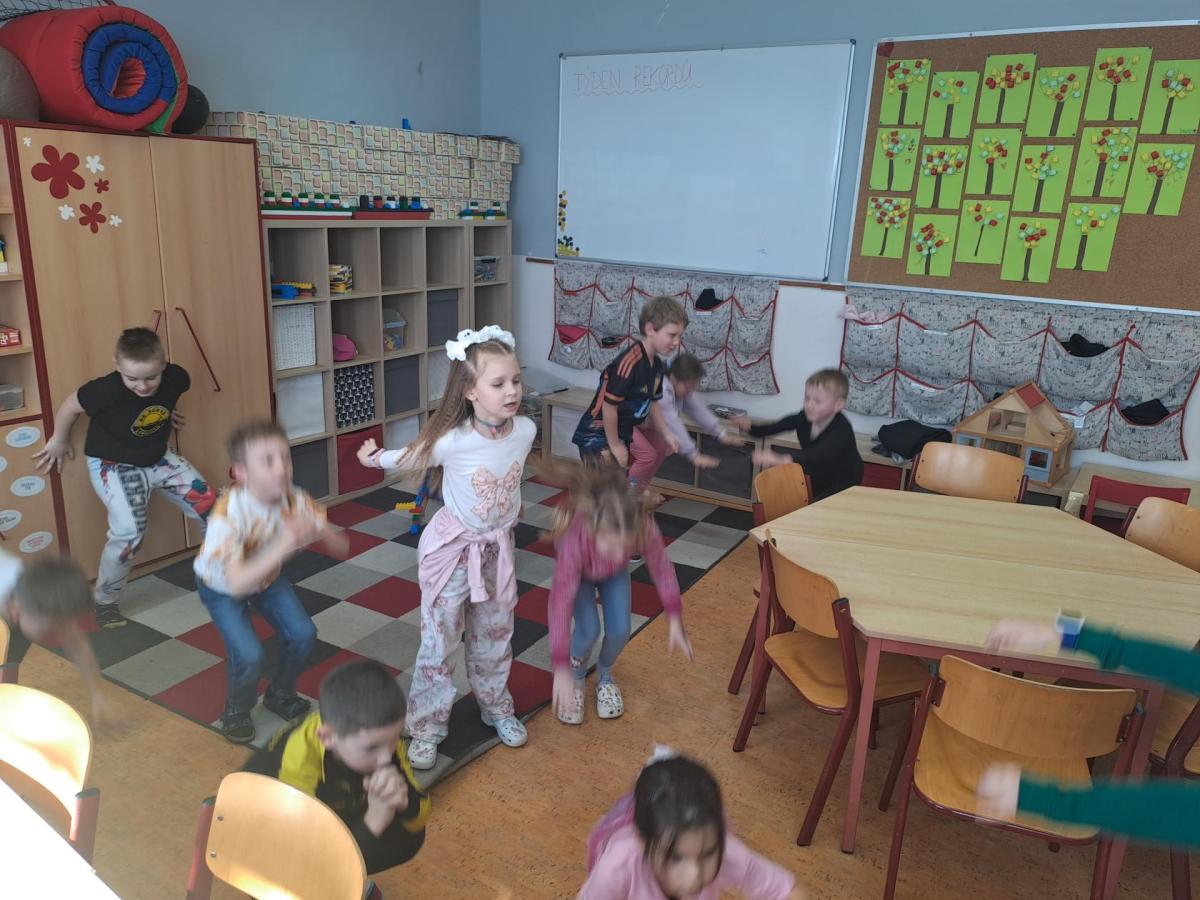 Trénovali jsme v družině při "Týdnu rekordů" a snažili se zlepšovat se v různých disciplinách, ať už to byl skok přes švihadlo, dřepy nebo pinkání ping-pongovou pálkou.