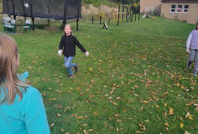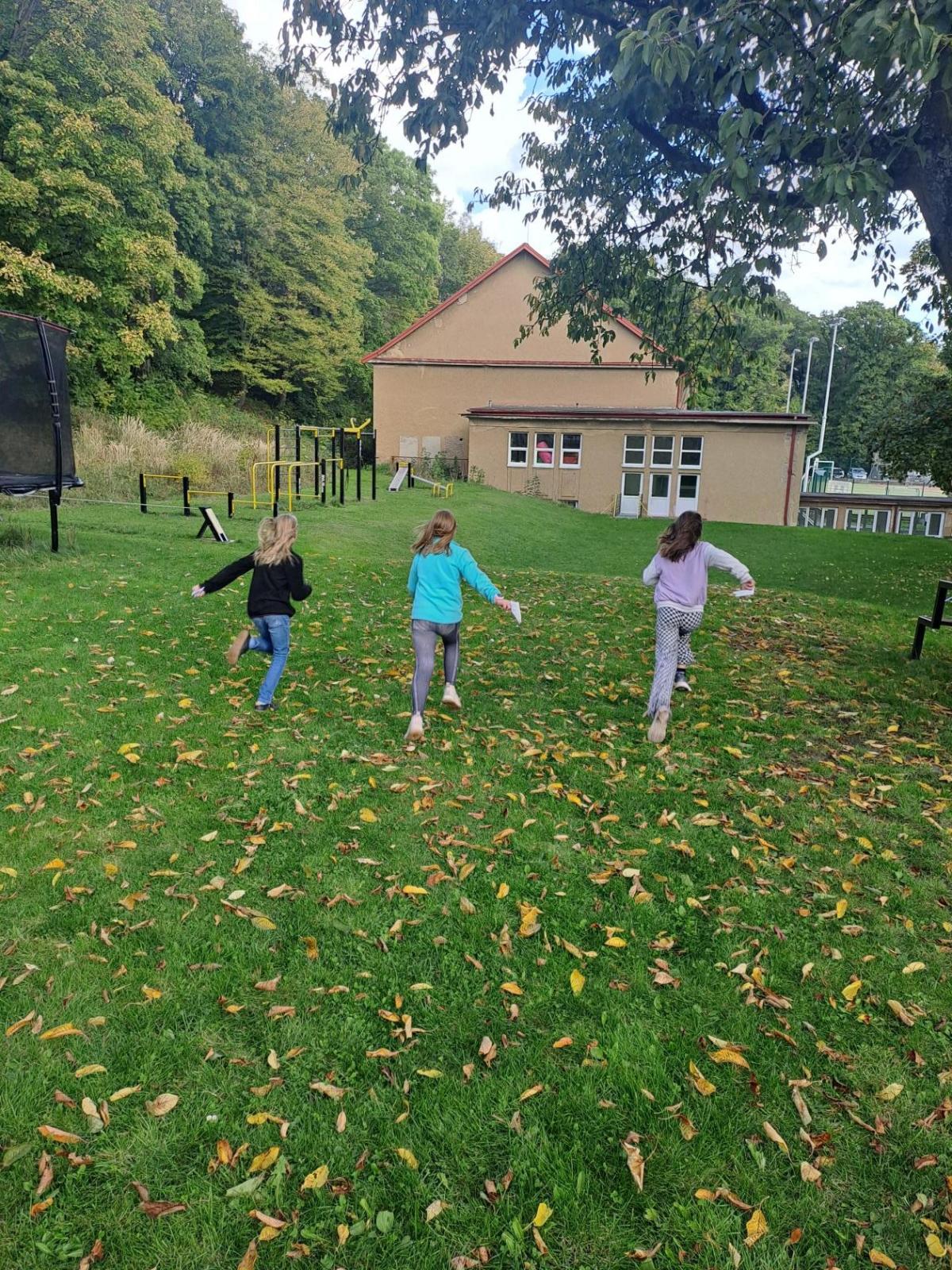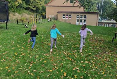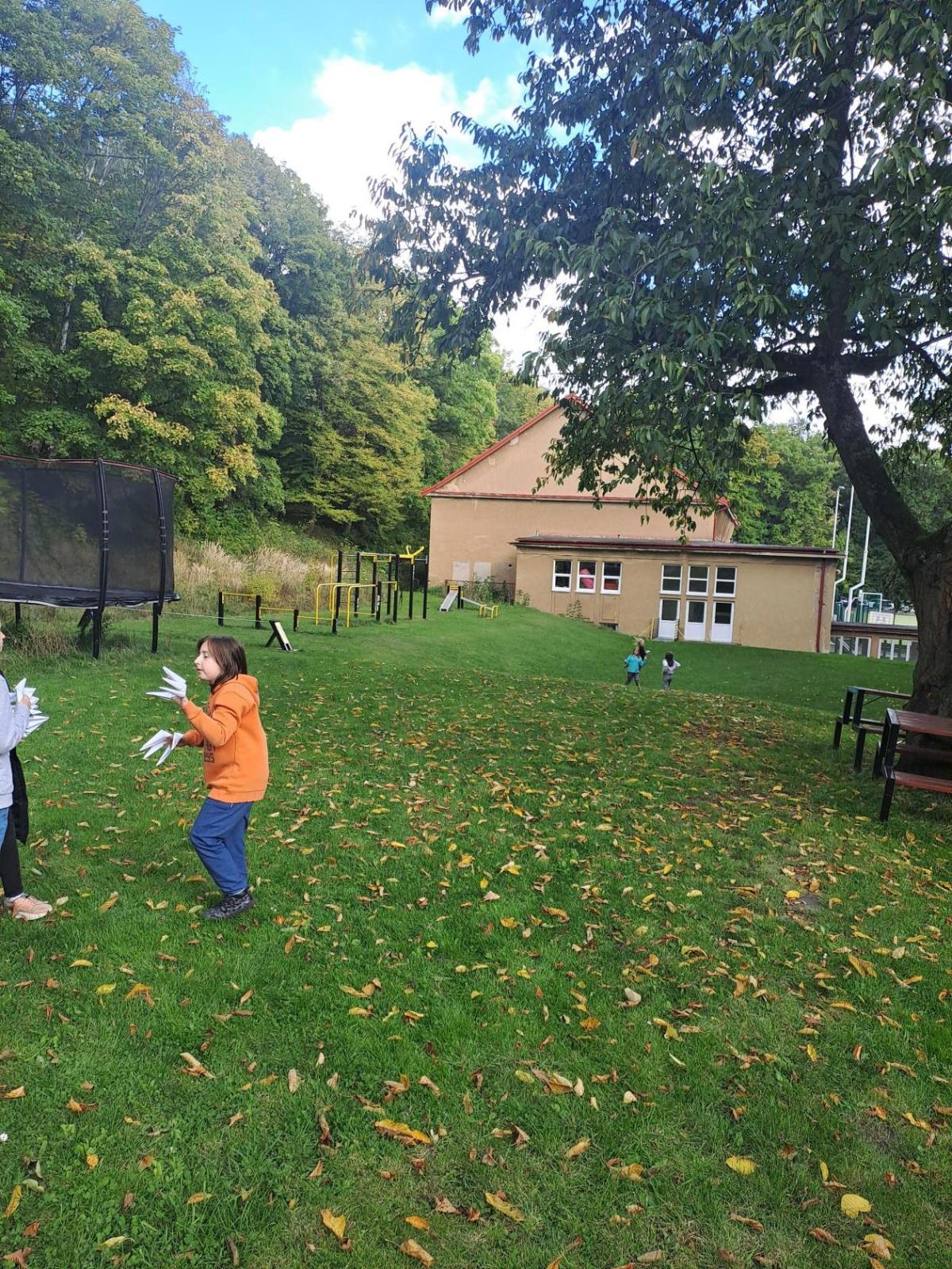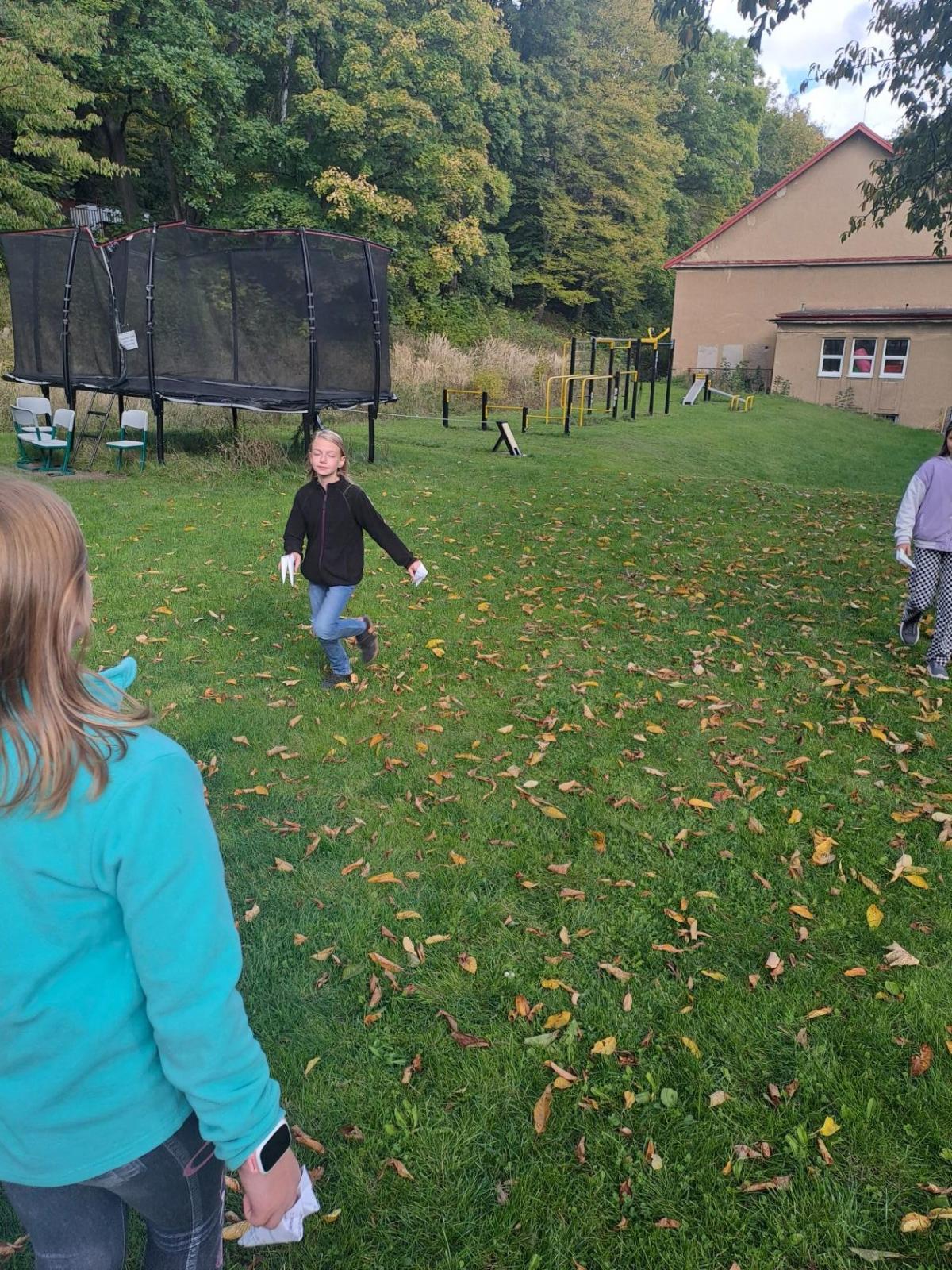 Zametání a úklid listí kolem družiny byl na denním pořádku.