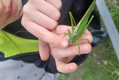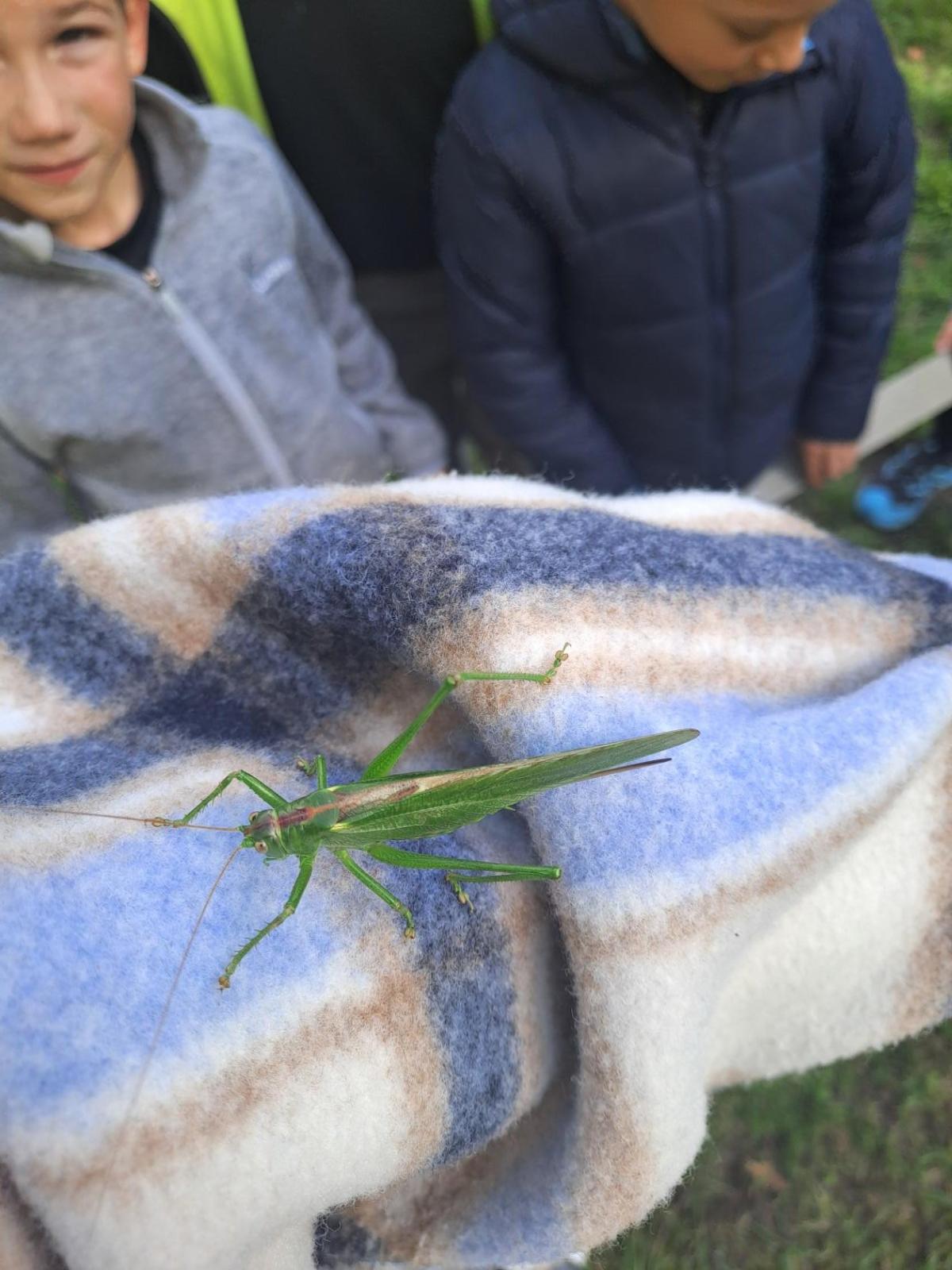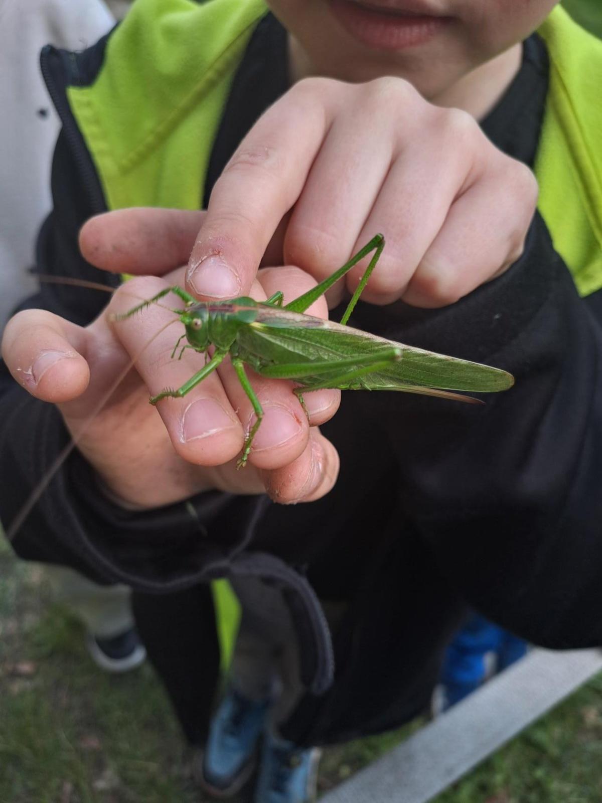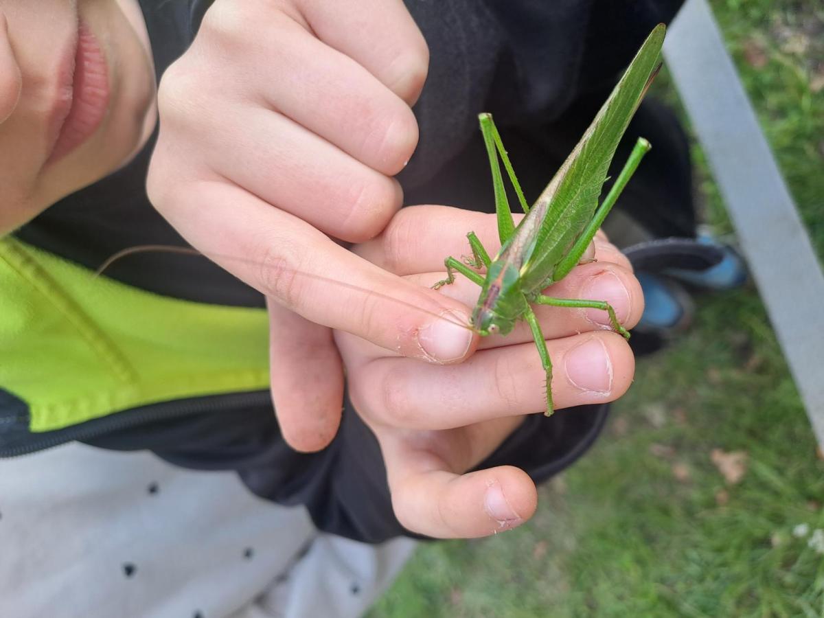 Pozorování přírody nám přineslo obří kobylku, kterou jsme si užili celou vycházku všichni do jednoho.