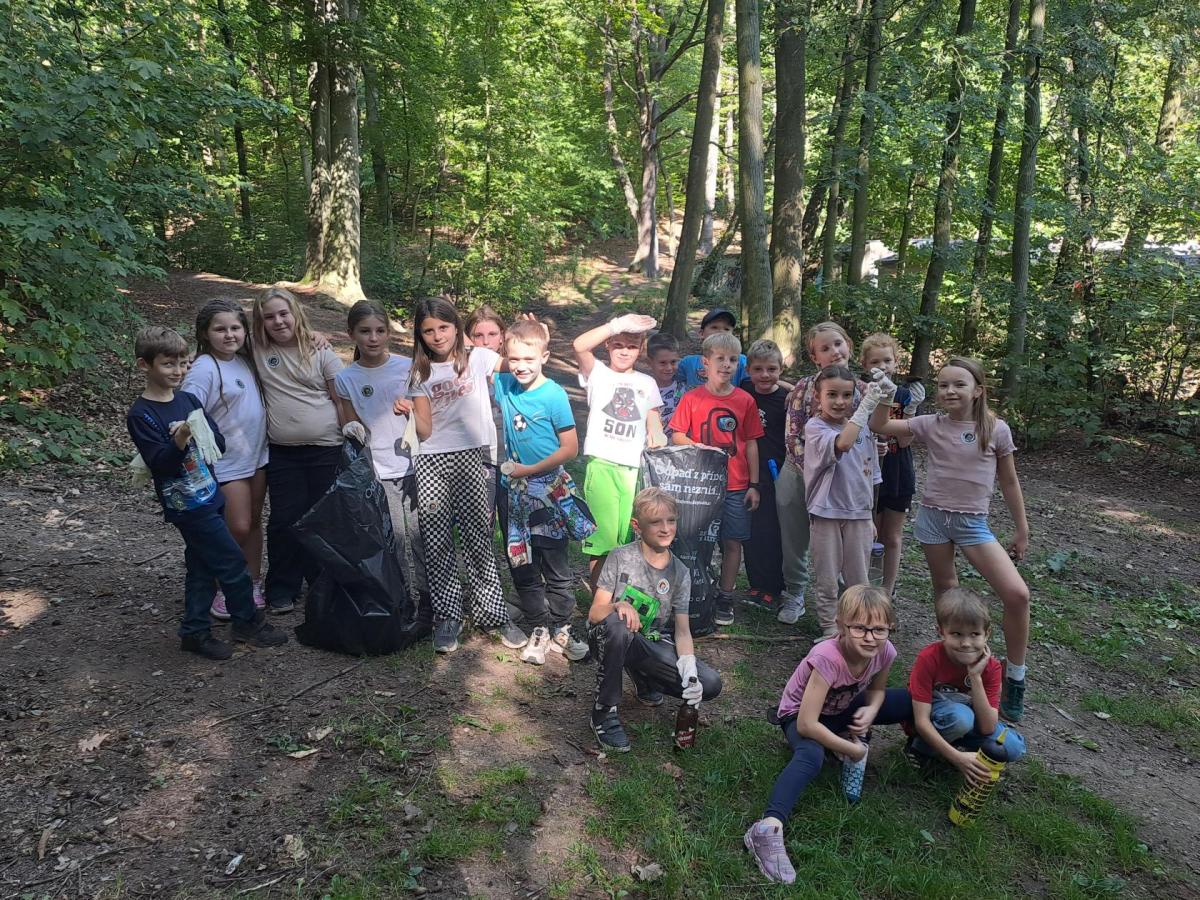 Zúčastnili jsme se celorepublikové akce Ukliďme Česko, kdy jsme vyčistili část lesa nad školou, kam si chodíme hrát.