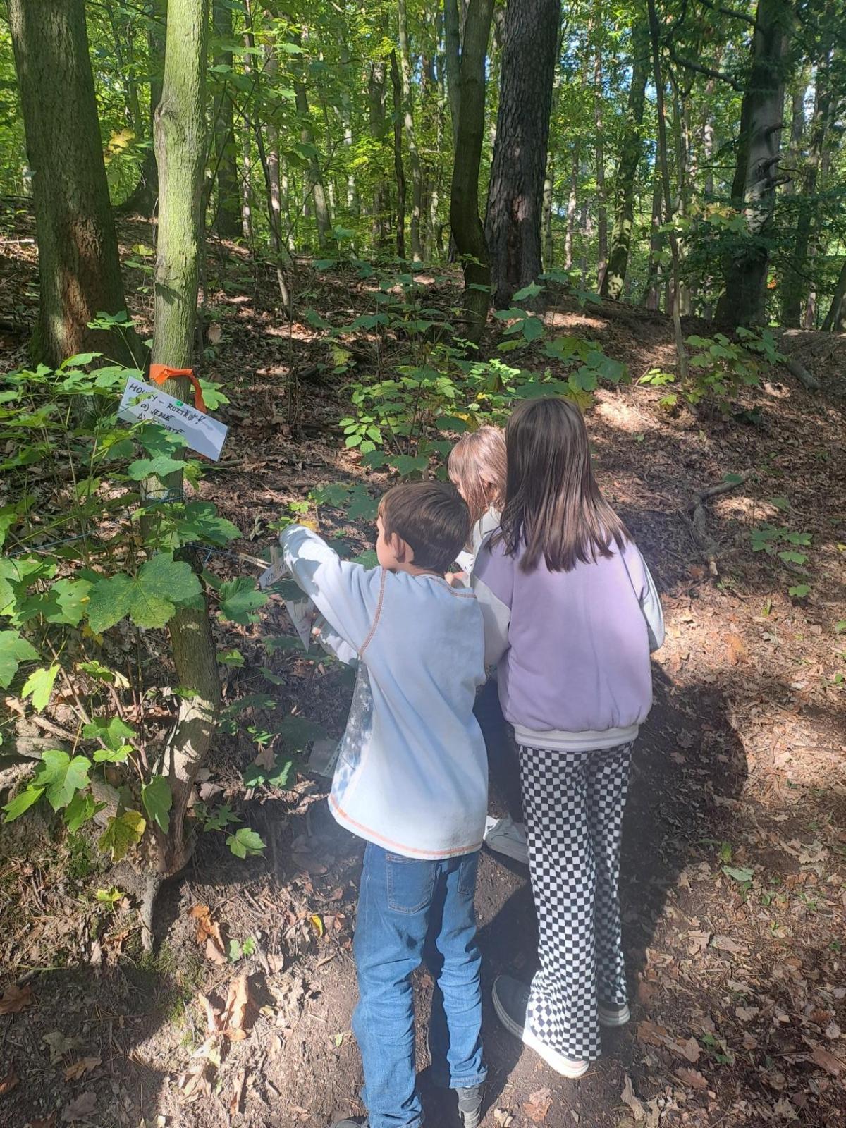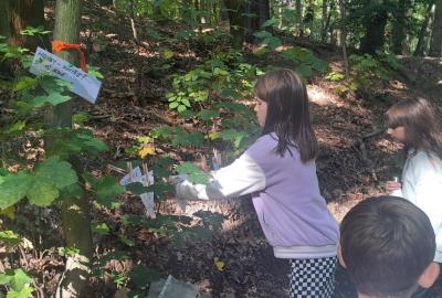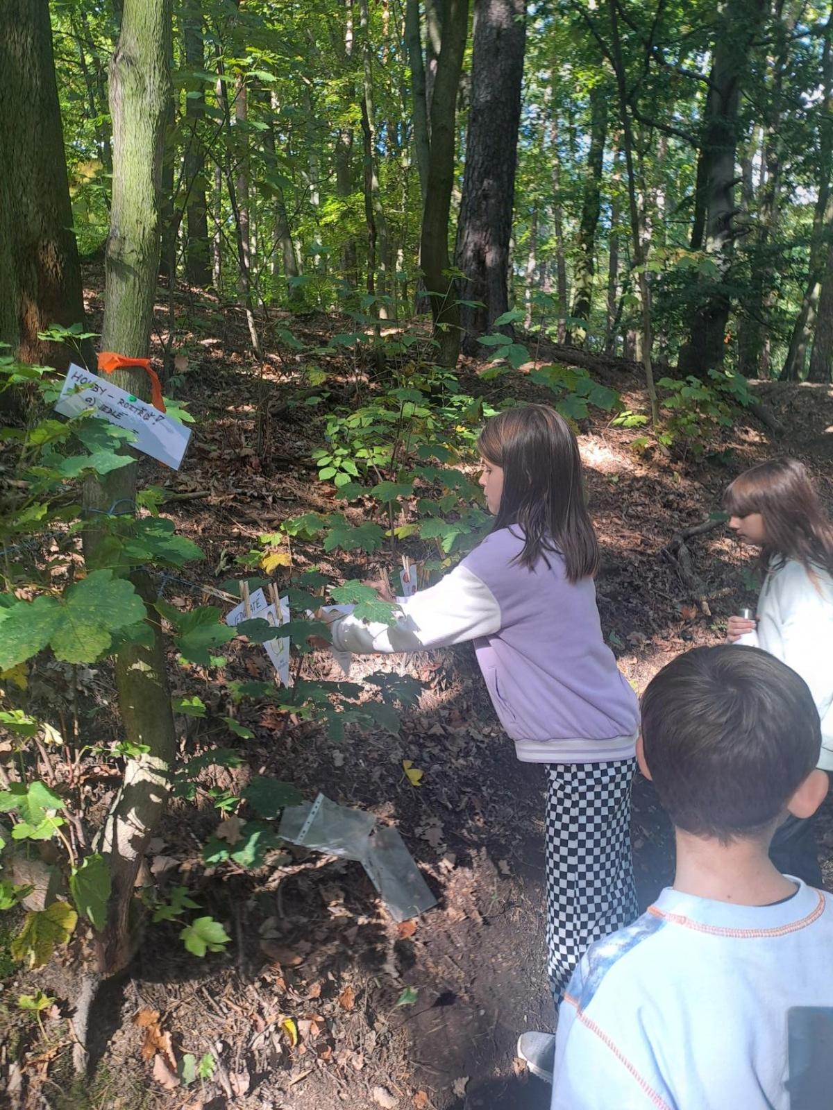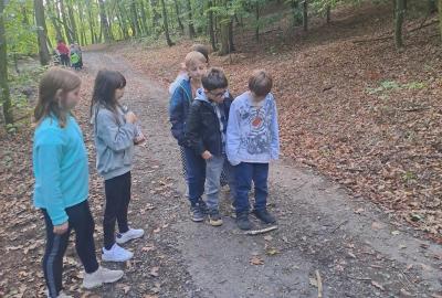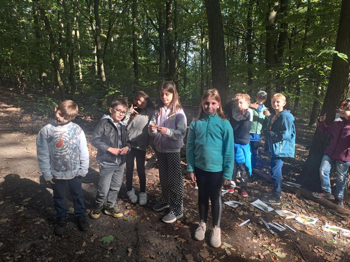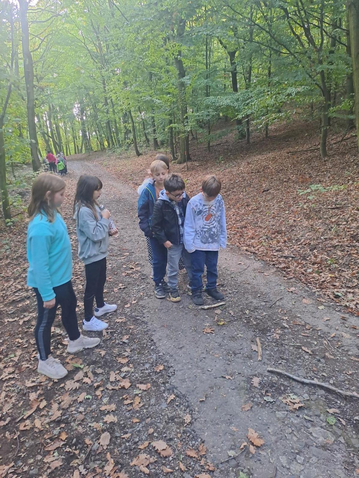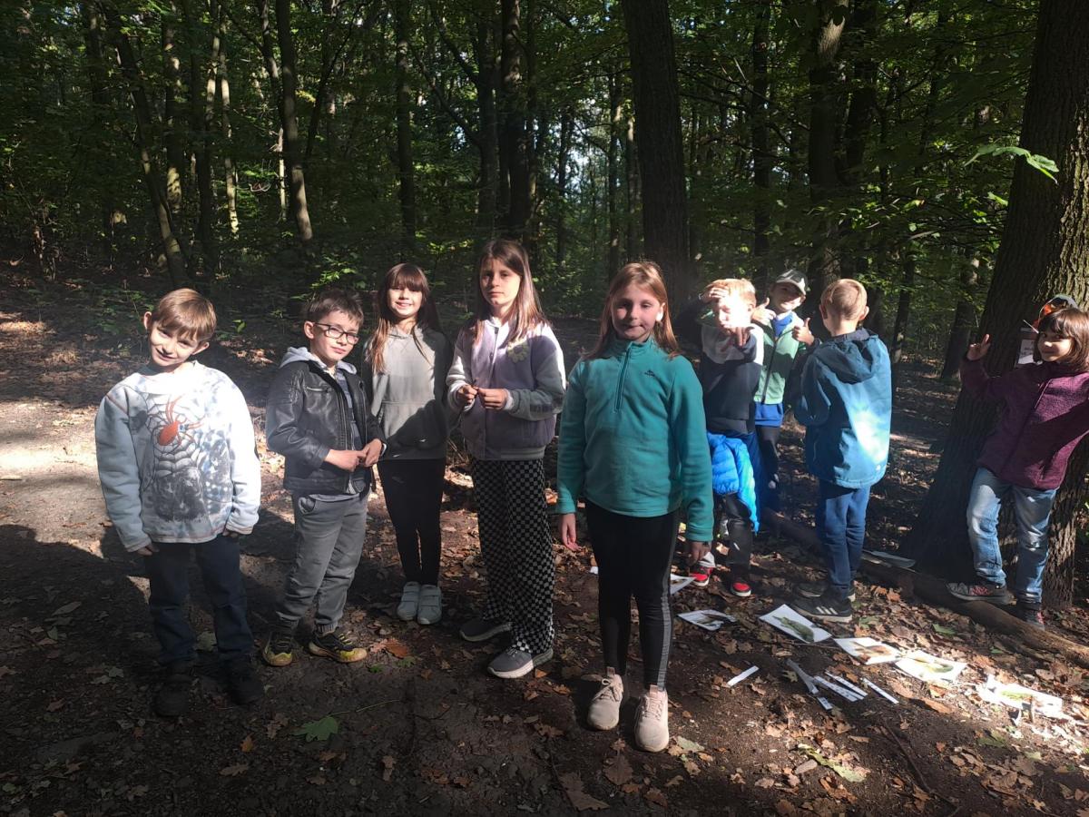 Prošli jsme si Stromovovou stezku pro prvňáčky, kde jsme se dozvěděli něco o lesní zvěři, stromech a houbách.