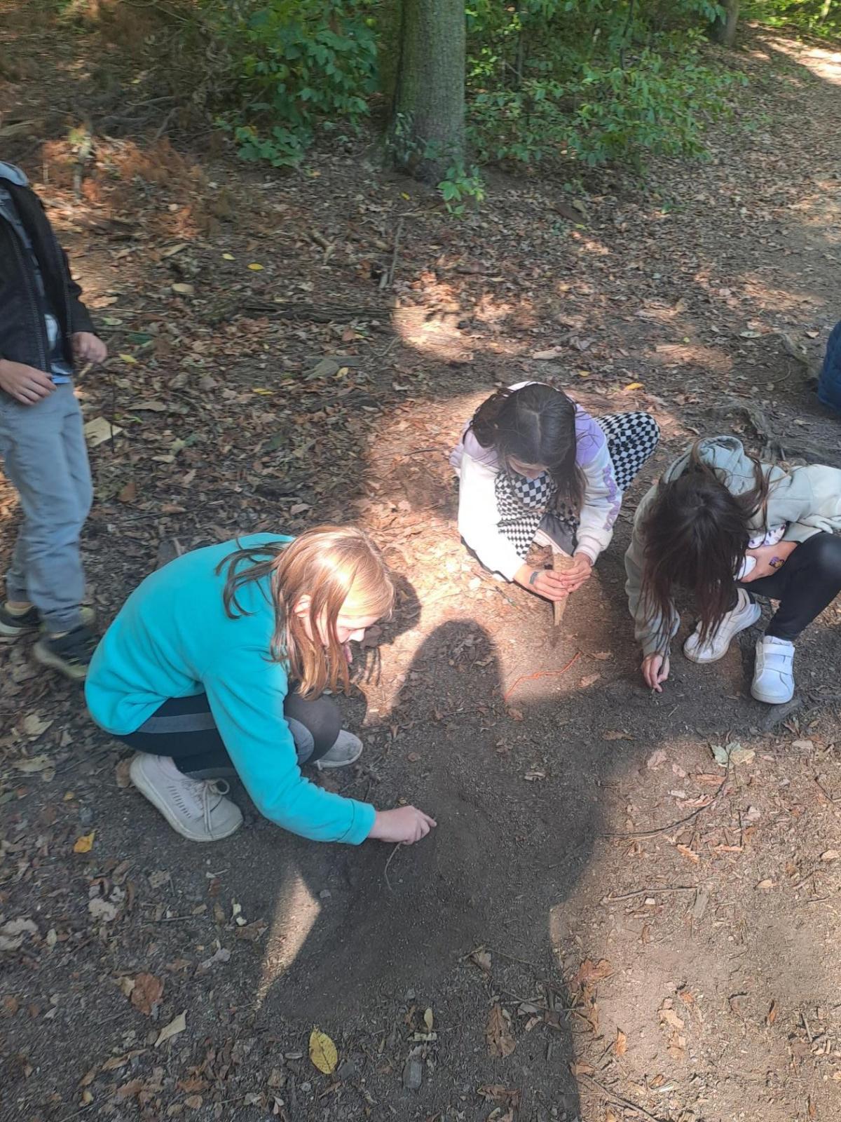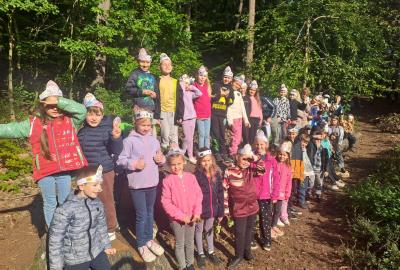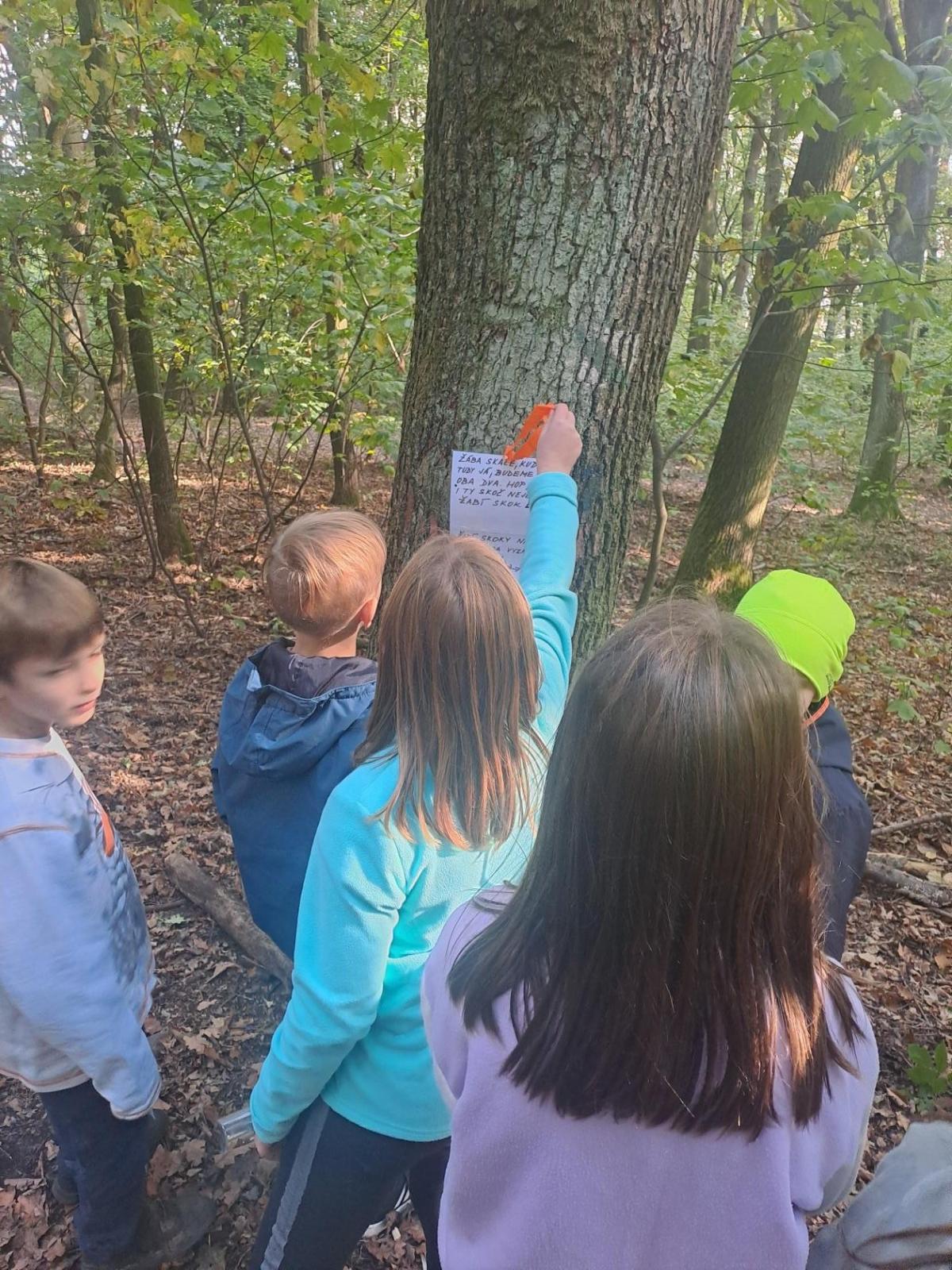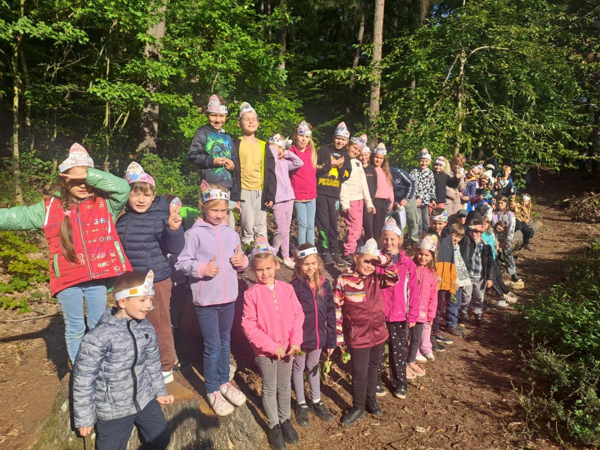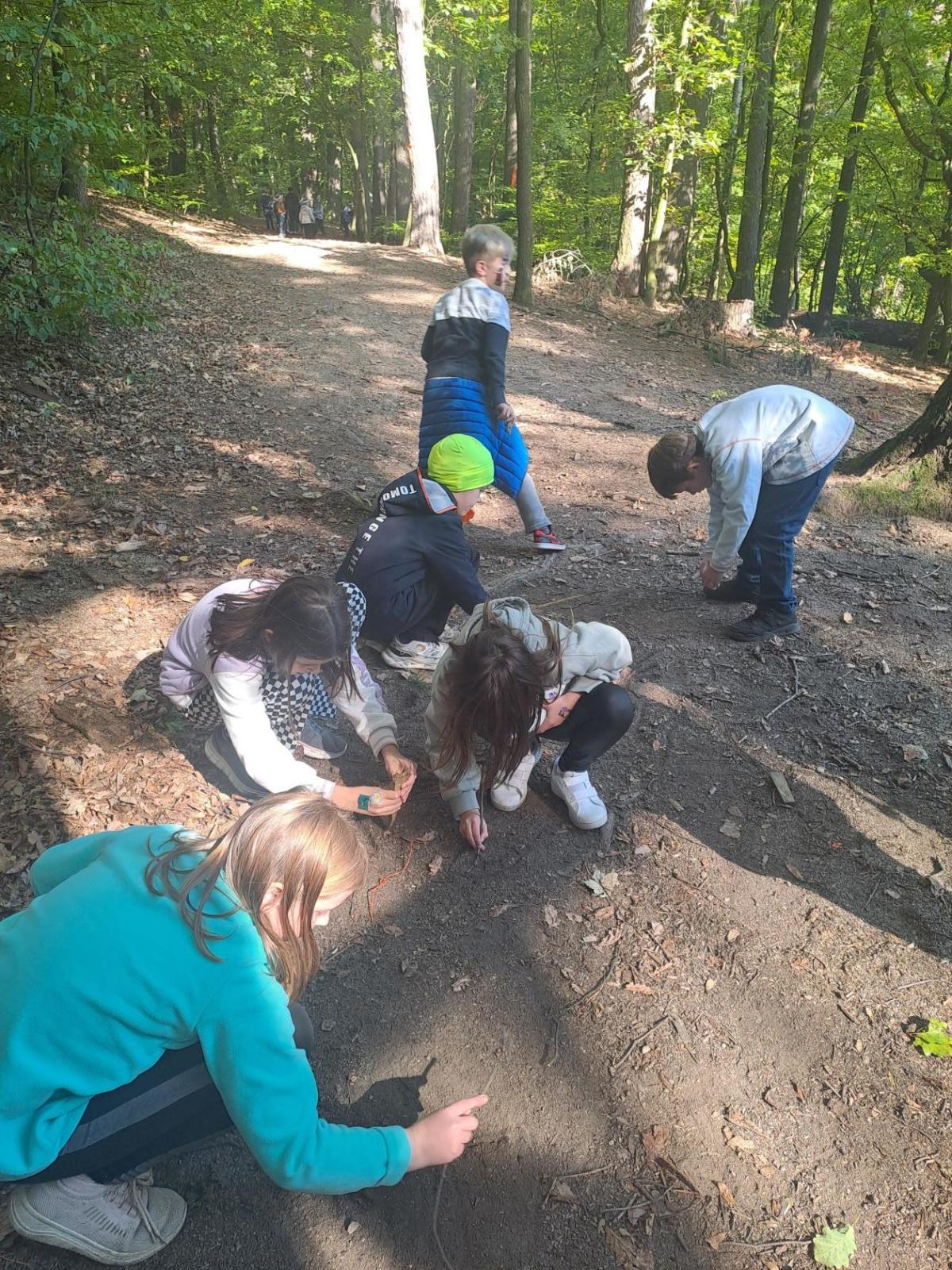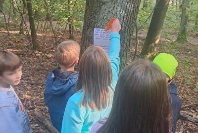 Prošli jsme si Stromovovou stezku pro prvňáčky, kde jsme se dozvěděli něco o lesní zvěři, stromech a houbách.