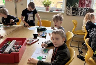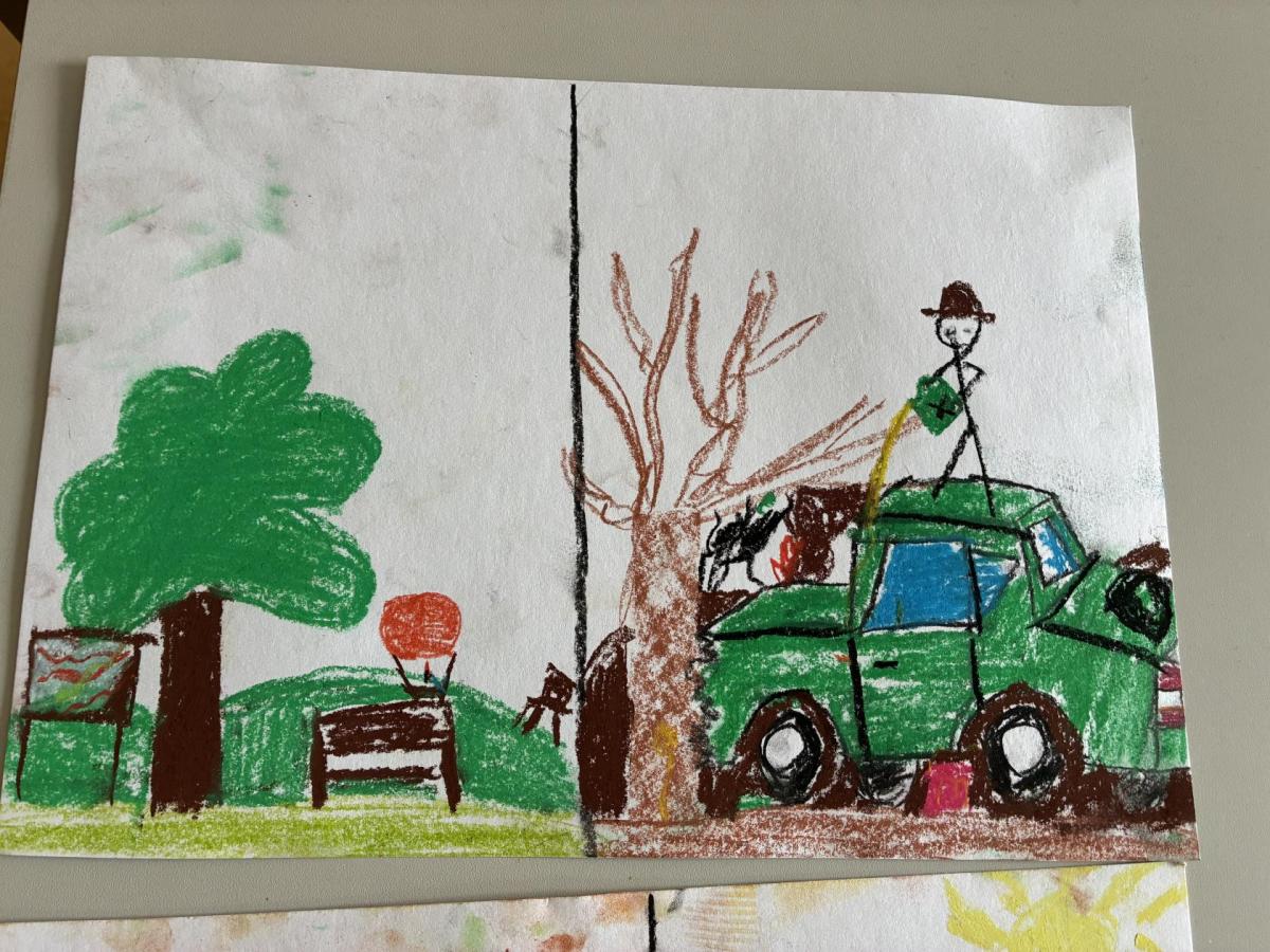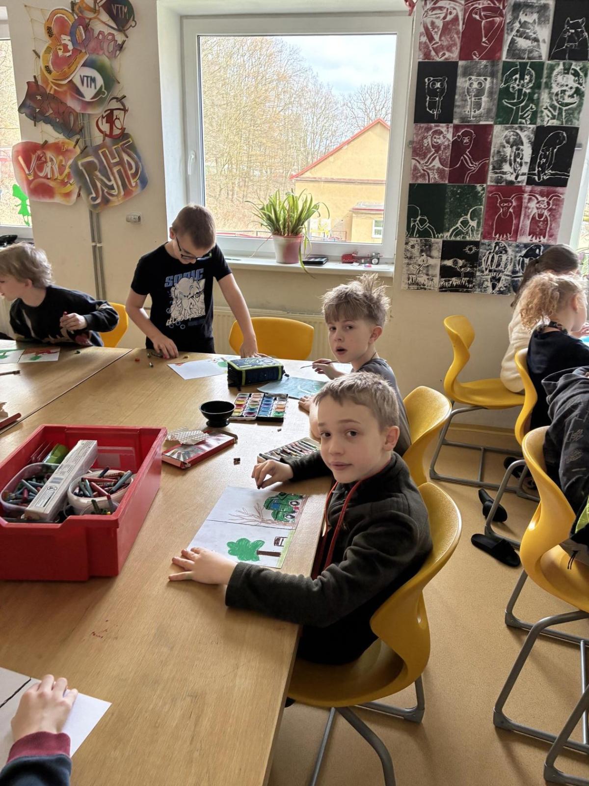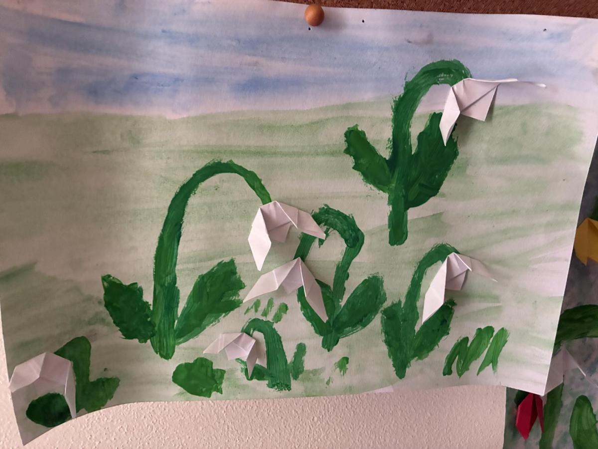 Následně jsme se zaměřili na jarní přírodu a první jarní květiny. Děti poznávaly typické jarní rostliny, kreslily květiny a pozorovaly změny v přírodě během vycházek. Součástí těchto aktivit bylo také téma ochrany přírody – děti výtvarně zpracovaly rozdíl mezi čistou a znečištěnou přírodou.