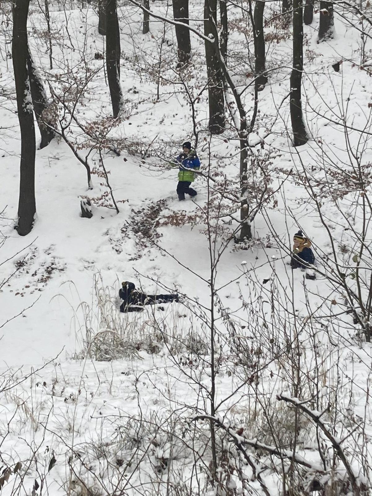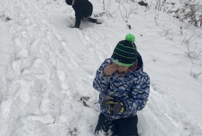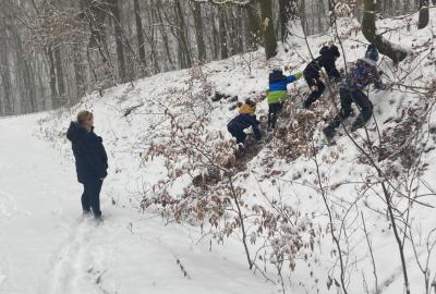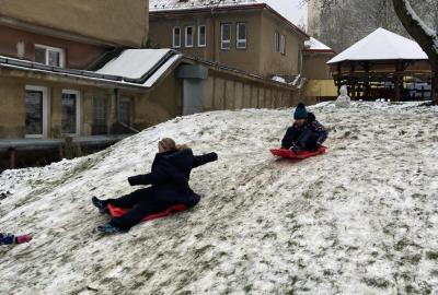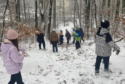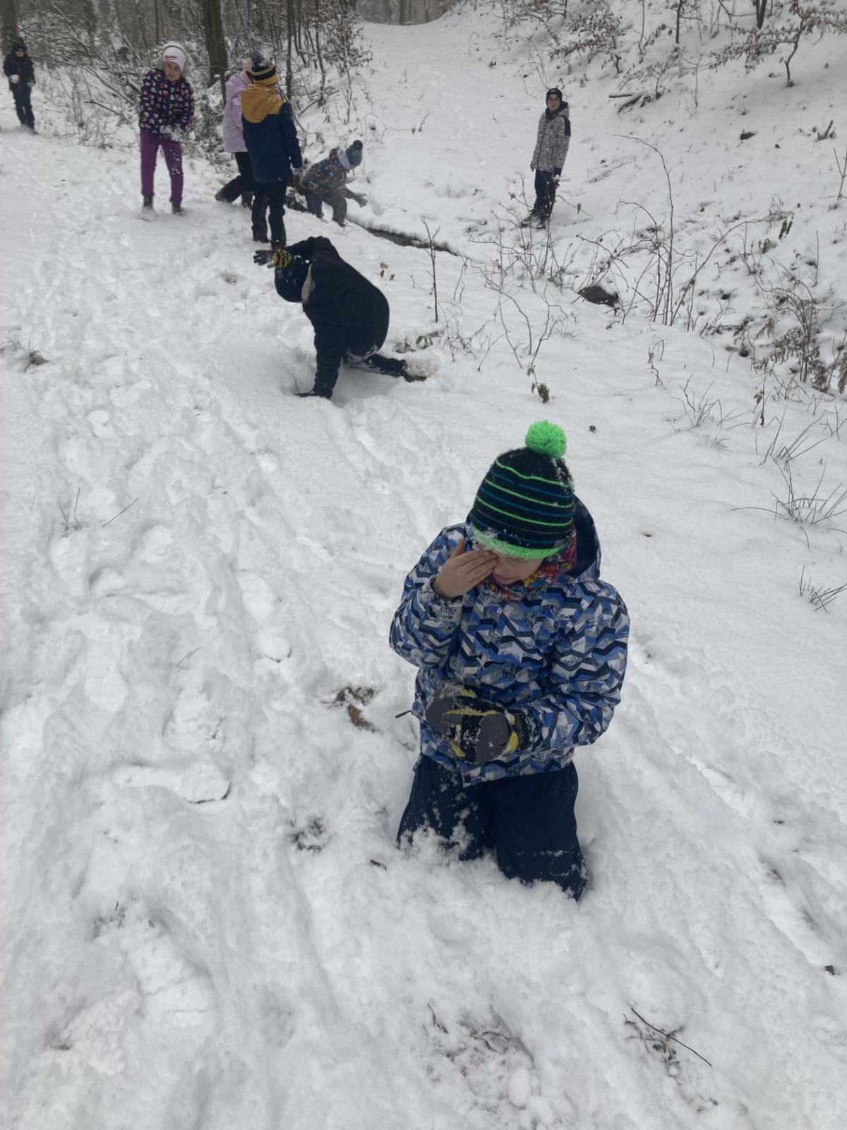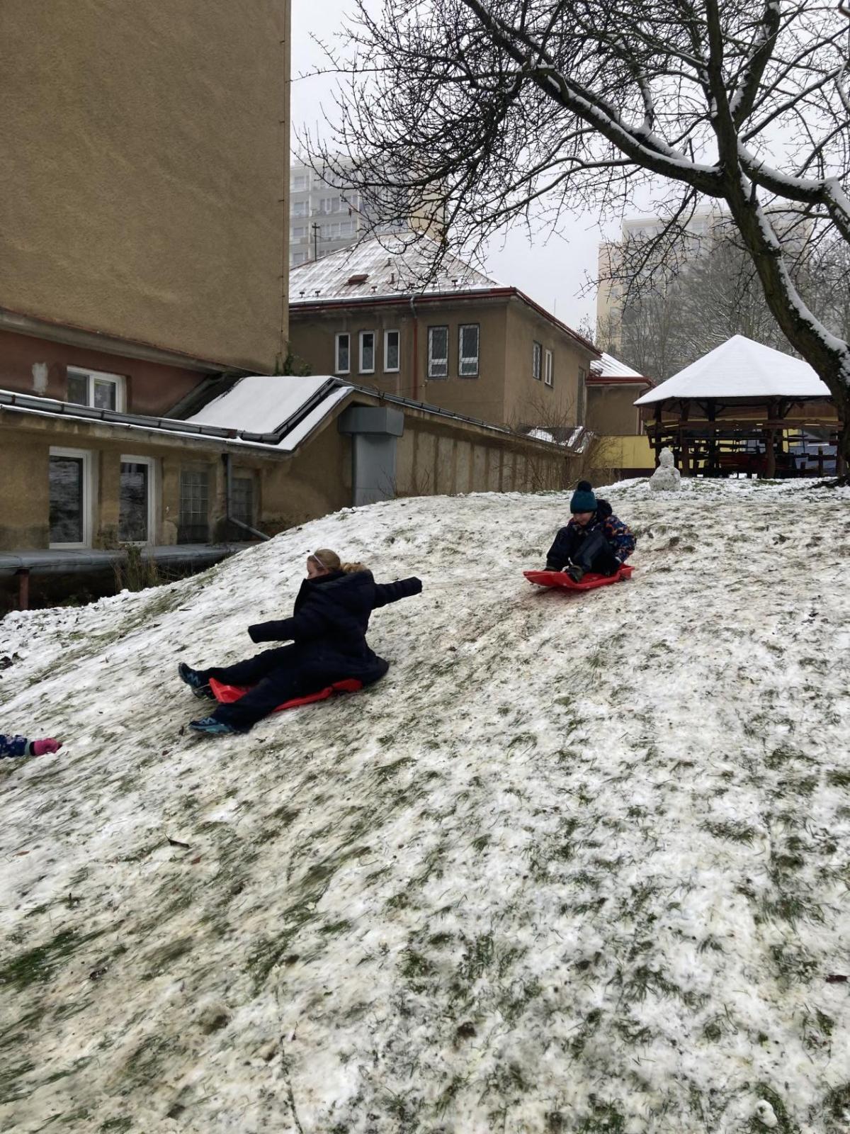 V adventním duchu jsme se vydali ozdobit školní vánoční stromeček v centru města. Hodně času jsme trávili venku – v lese, na Skalce i na školní zahradě. Tam jsme si užívali první sníh: stavěli jsme sněhuláky, koulovali se, dělali anděly ve sněhu a také bobovali.