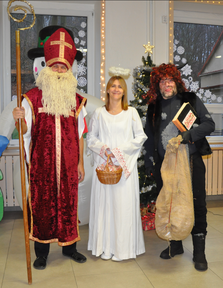 Dnes na Sportovce naděloval Mikuláš, čert a anděl dětem malou sladkost.