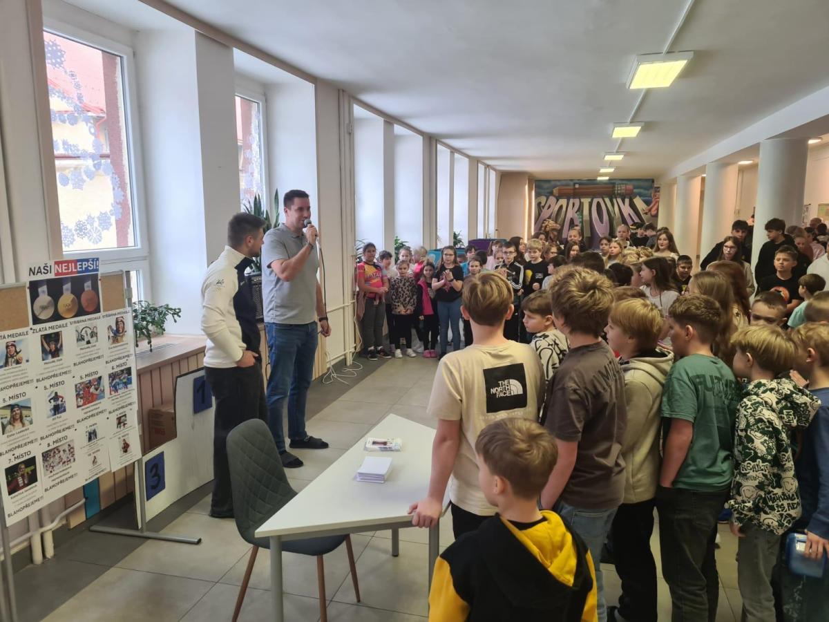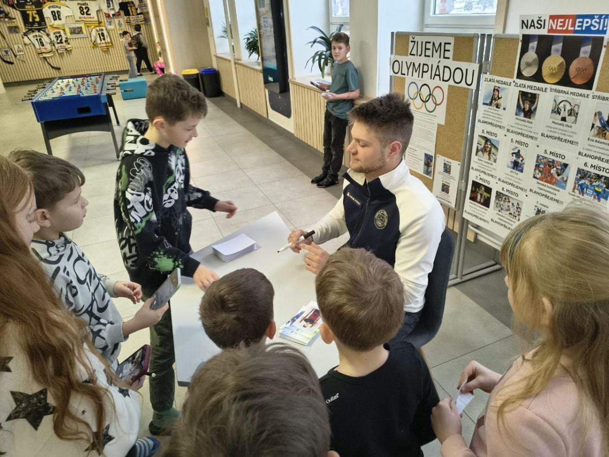 Největší radost však měli žáci z autogramiády. Marek trpělivě podepisoval kartičky, fotografoval se s dětmi a ochotně odpovídal na všechny otázky. Pro mnoho žáků ze Sportovky se může stát inspirací a důkazem, že i jejich sportovní cesta může vést až na olympiádu.