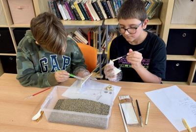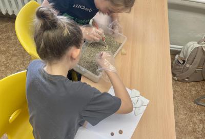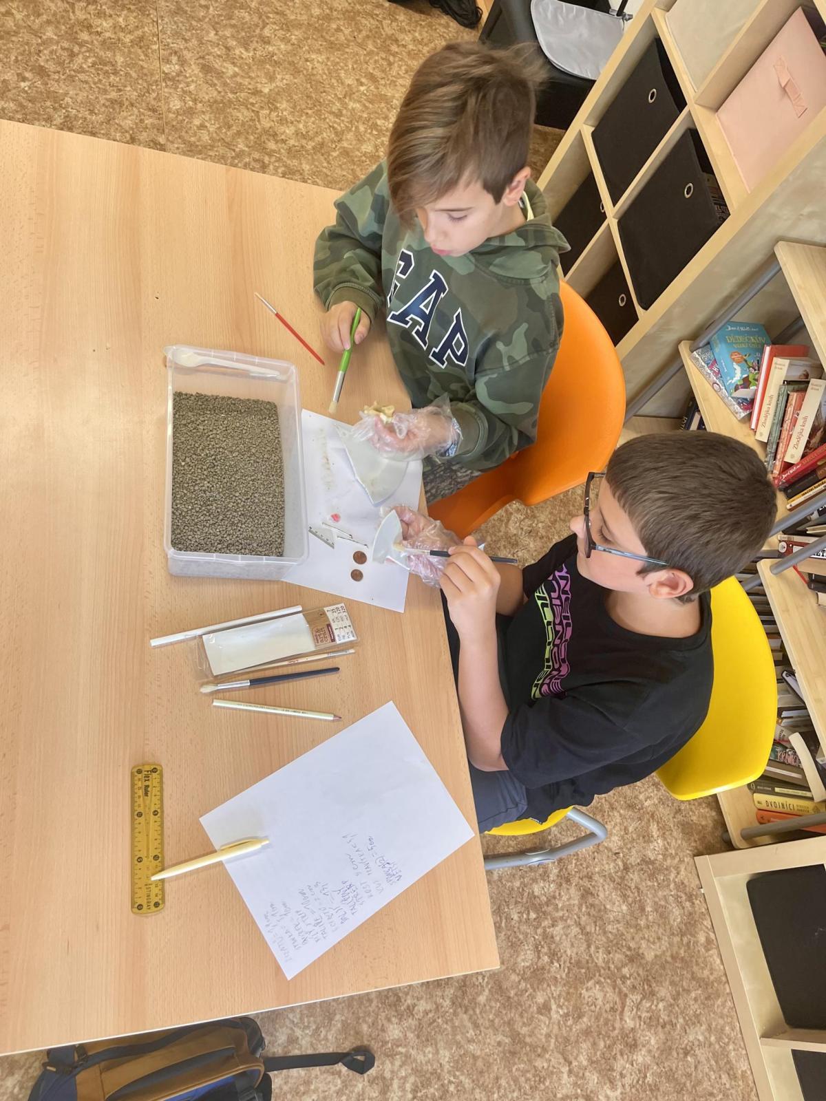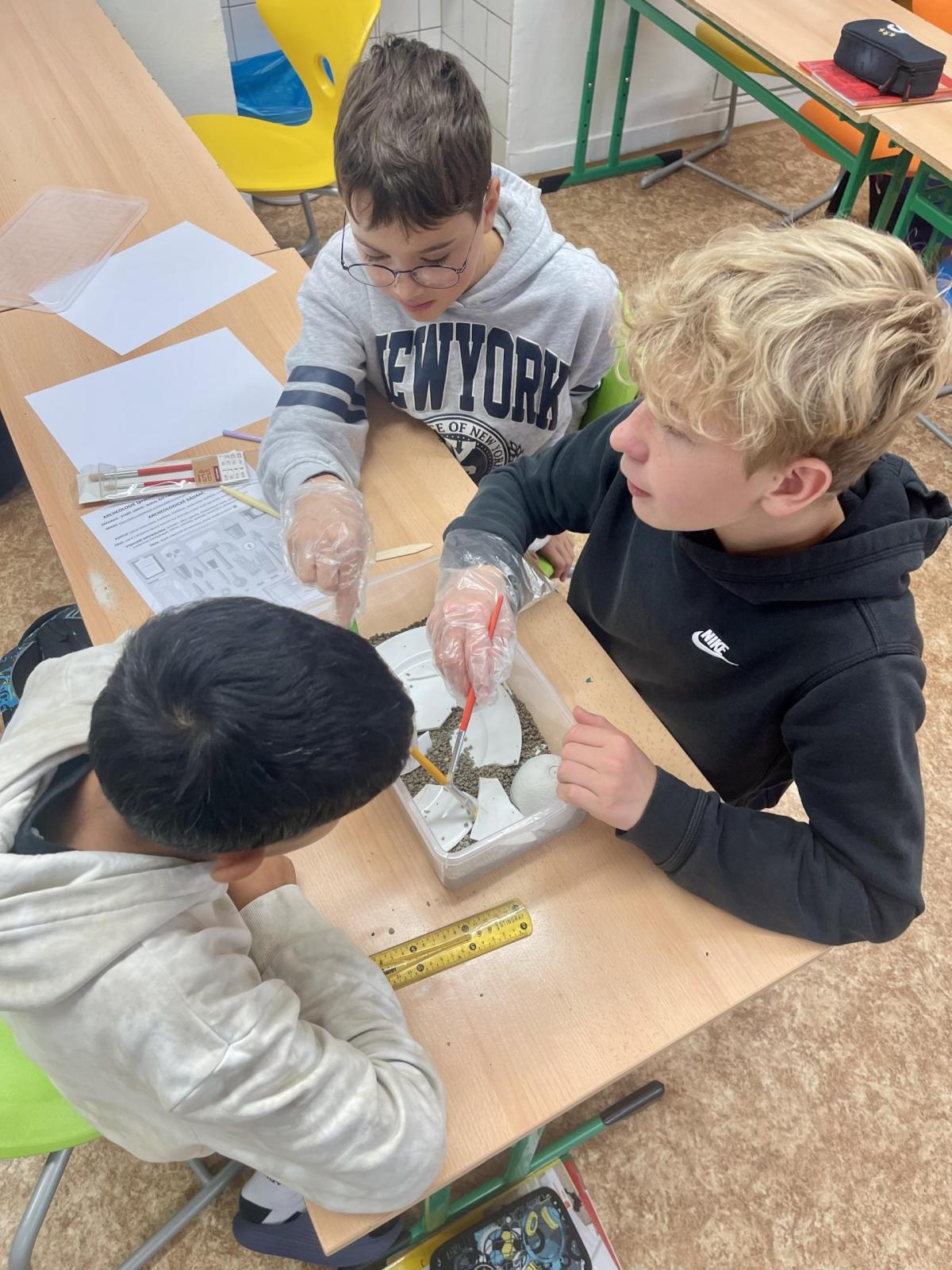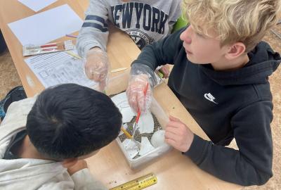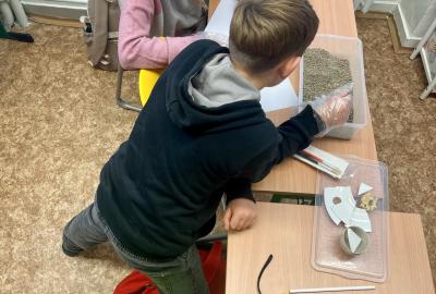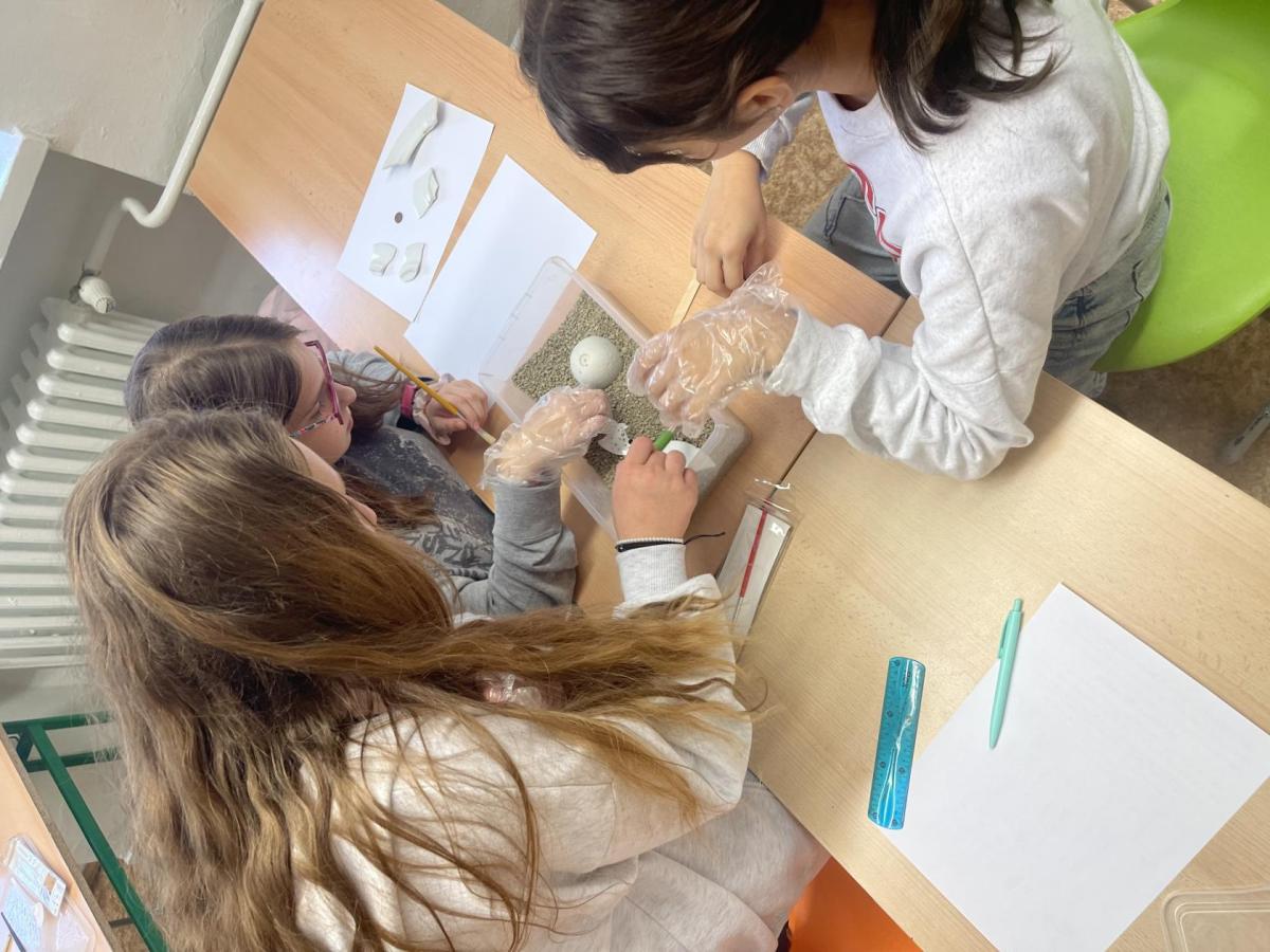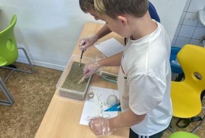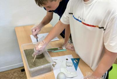 V dějepise jsme se pustili do dobrodružství jménem Staň se archeologem. Žáci si vyzkoušeli práci skutečných archeologů a s velkou dávkou trpělivosti odkrývali své vykopávky. Každý nález hmotného pramene samozřejmě pečlivě zaznamenávali. Tato zážitková hodina dějepisu nám pomohla lépe pochopit, jak důležité je bádání pro poznání minulosti.
